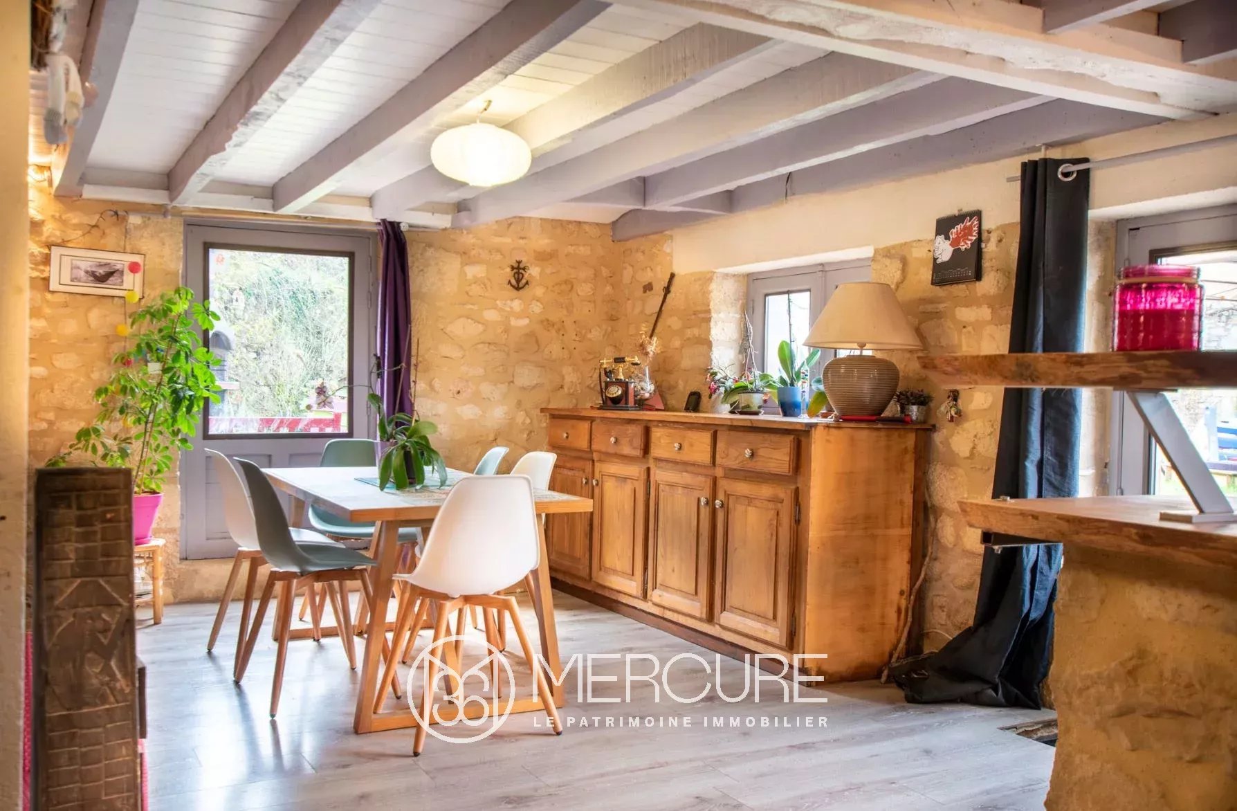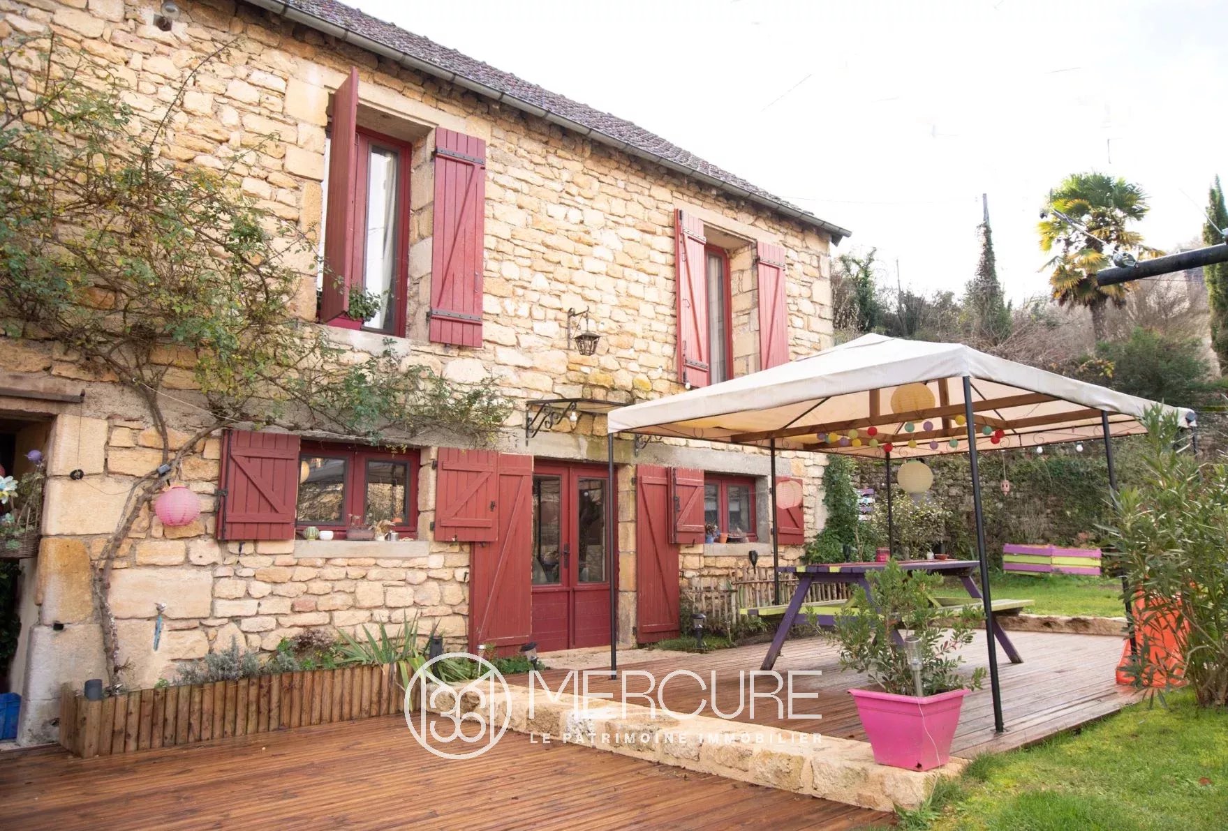 Charming house in a hamlet in the most attractive part of the Dordogne valley. Entirely refurbished, cosy and comfortable, 154m². On the ground floor, large living and dining room, kitchen opening on the terrasse. On the first floor, 4 bedrooms including a large room with a dressing area. A 75m² barn is attached to the house and offers the possibility to enlarge the housing. Reversible air conditioning, wood stove.