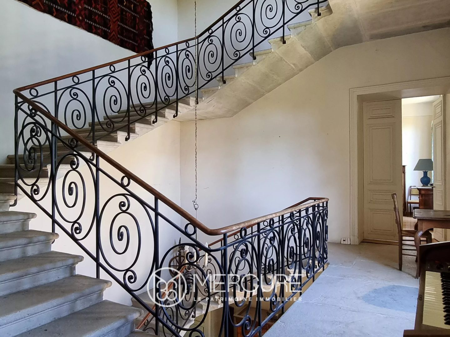 A sumptuous stone staircase leads to the upper floors. On the first floor, 5 bedrooms, 1 bathroom, 1 WC, a shower room, 3 other rooms, one of which has access to a terrace overlooking the parklands. A room of 95 m² to be fitted out.