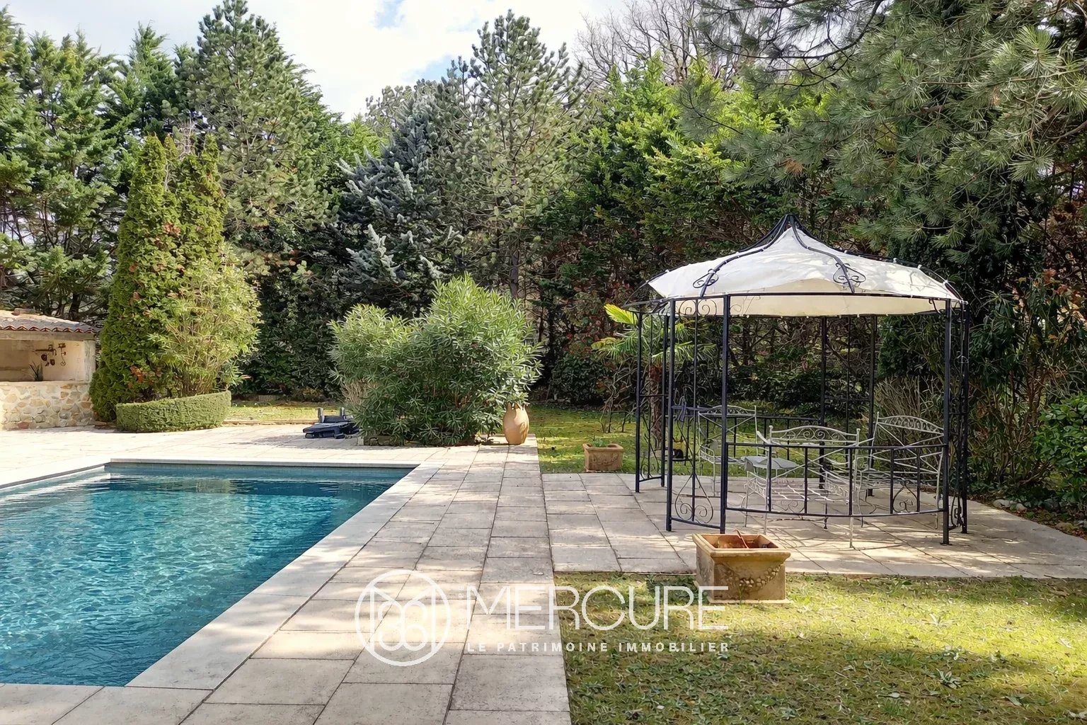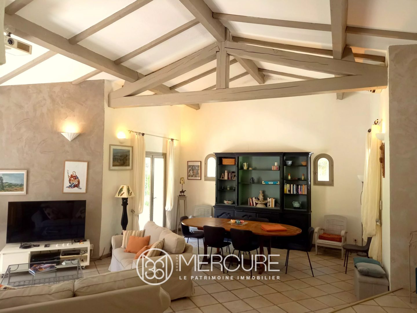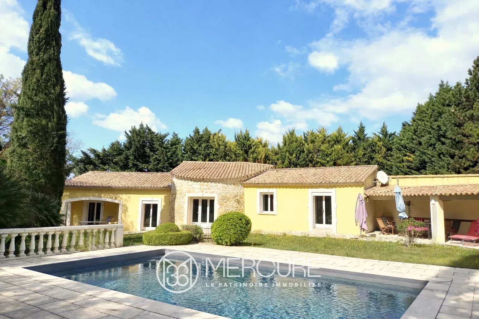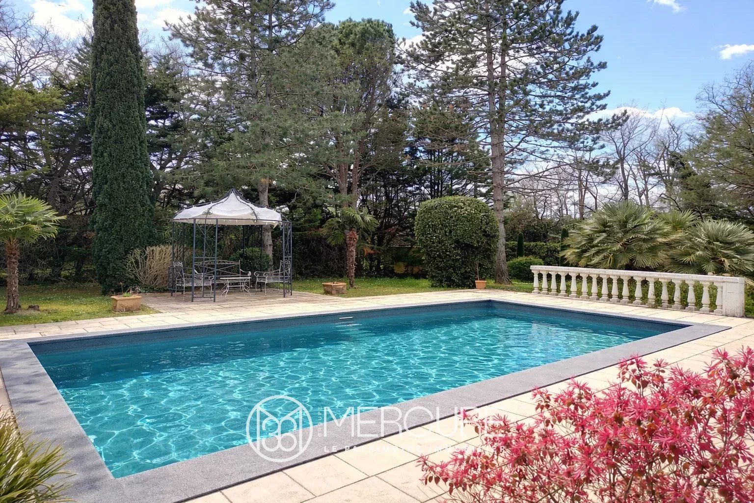 In Drôme Provençale, set within a lovely enclosed garden of 2,500 m² featuring trees and flowers, an elegant, single-storey architect-designed villa of 217 m² facing