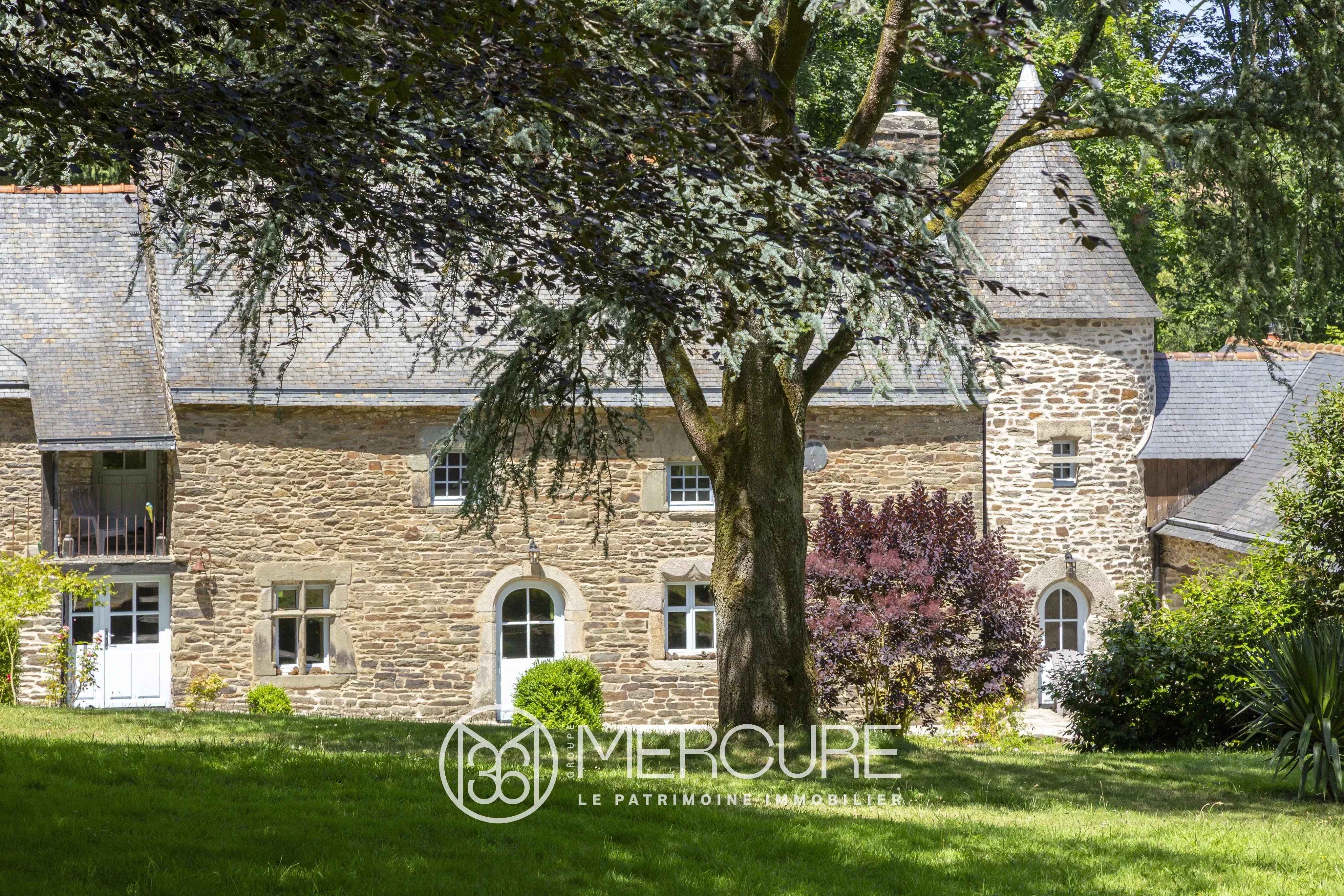 Positioned at the heart of the estate, elevated and hidden from the road, the manor is arranged around a round tower and two wings forming an L-shape. Typical Breton architectural features include stone lintels, mullioned windows, and slate roofs.