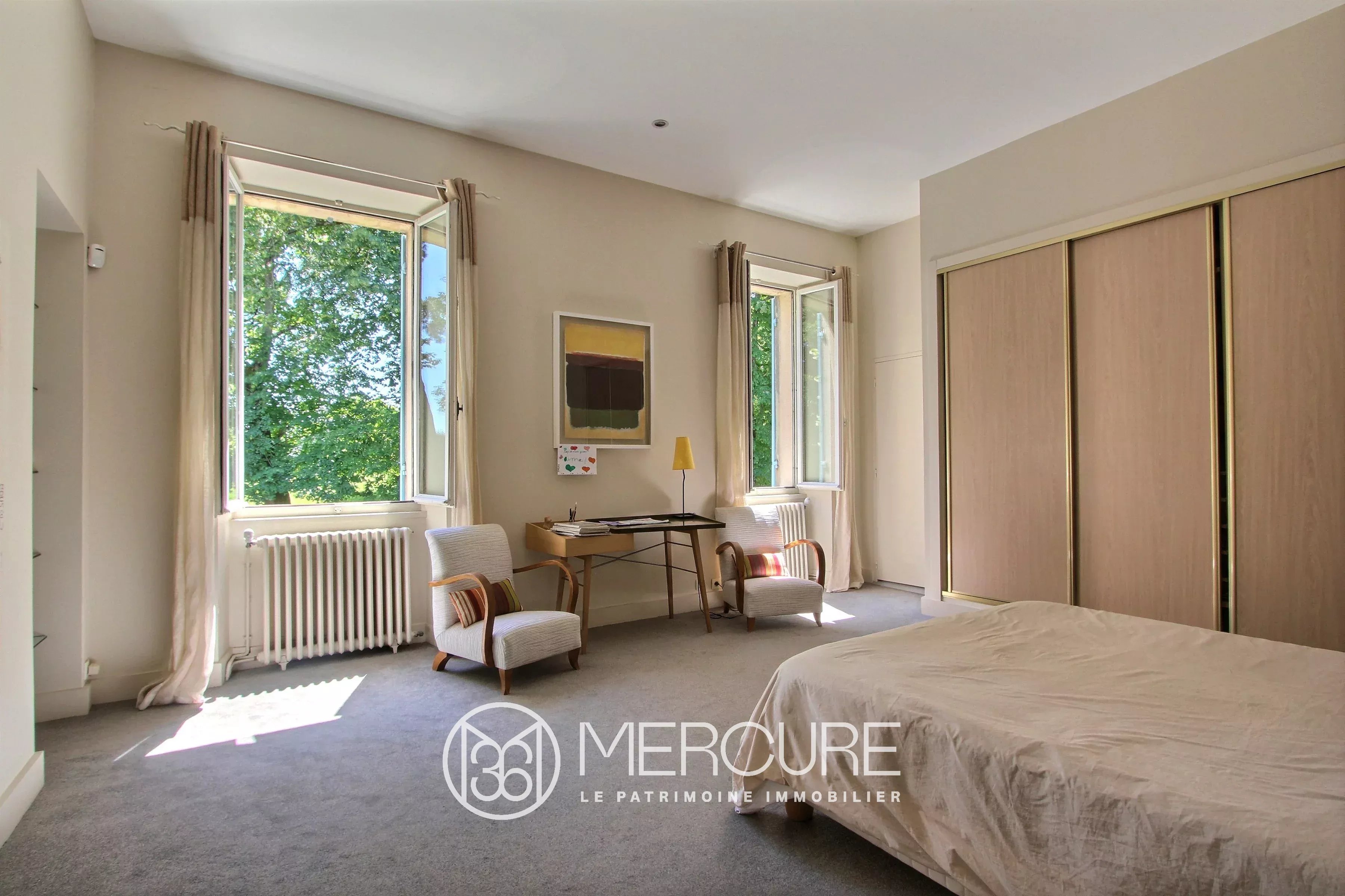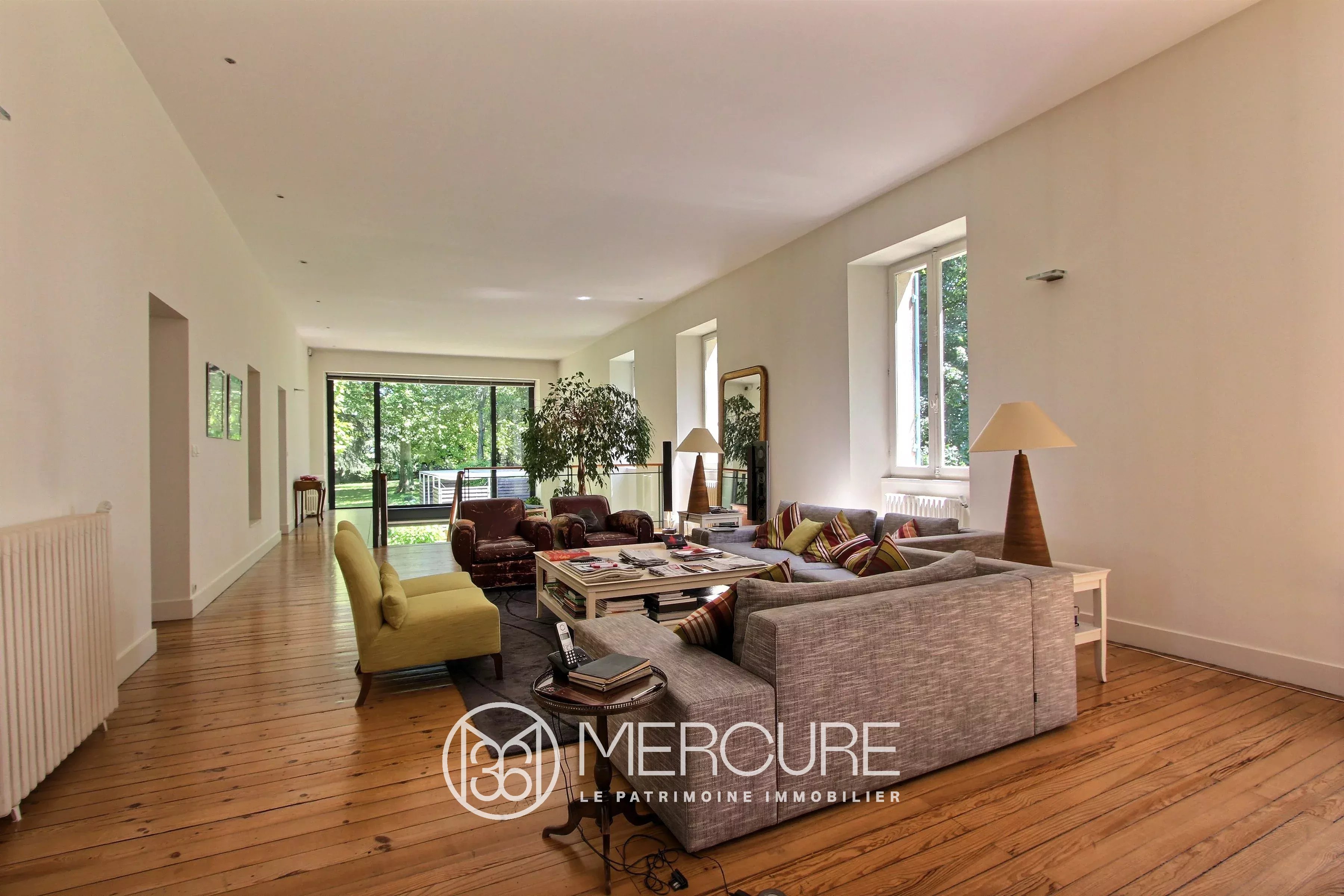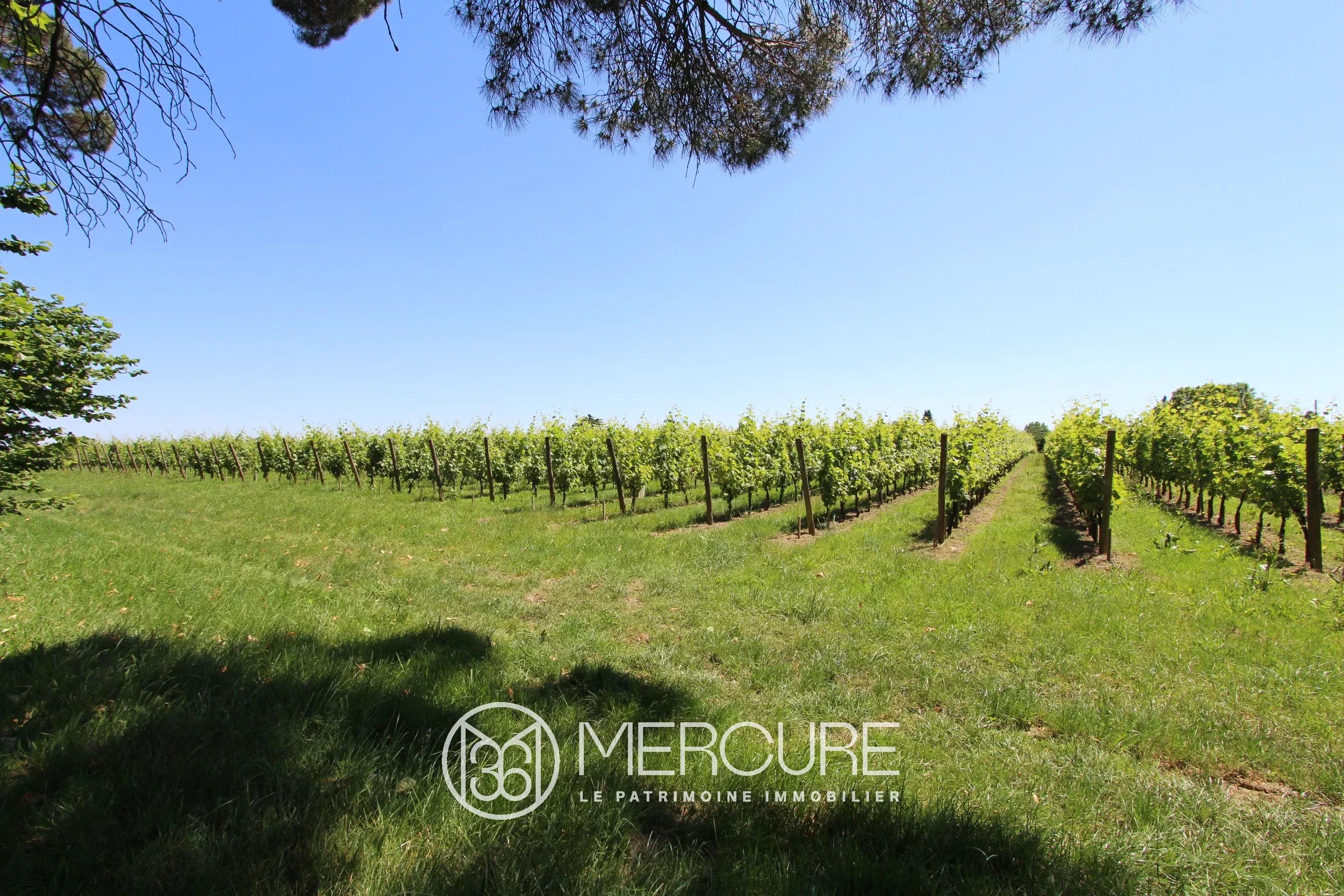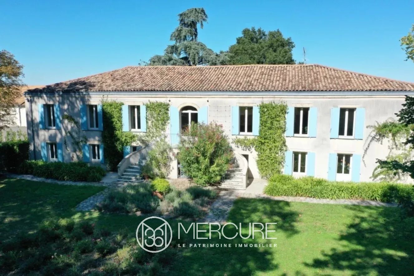 For sale, 20 minutes north of the center of Bordeaux, this master house, restructured by an architect, offers approximately 530 m² of living space, clear and airy volumes with panoramic views of the countryside and the vines. The house, with a surface area of 253 m², includes: On the ground floor: – Very bright living room (63 m²), pitchpin parquet, French window on the front steps, many openings with views of the park and the vines. – Dining room (34.3 m²), pitchpin parquet, two French windows onto balcony, countryside view, cupboard, – Equipped family kitchen (27.7 m²), pitchpin parquet, fireplace with grill, – Lounge library (29.5 m²), double northeast exposure, carpet, – Large bright bedroom 1 (25.9 m²), two windows to the south, carpet, wardrobe, shower room (15.6 m²) including shower, double sinks , separate cupboard and WC, – Corridor and hallway (8.8 m²), cupboard, access staircase to the ground floor, – Bedroom 2 (20.2 m²), double window to the north, carpet, cupboard – storage room (1.3 m²), – WC (2 m²) with washbasin – Bedroom 3 (19.8 m²), double windows to the north, carpet, cupboard – Bathroom (5.2 m²), bathtub , bidet, double sinks. Basement: – Laundry room (15 m²), exterior access, – Clearances (12.5 m²) – Bedroom 4 (27.8 m²) west, terracotta tiles, cupboard, with shower room (3 m²) – WC (2.2 m²) with hand basin, – Bedroom 5 (14.8 m²), two windows to the south, carpet, cupboards, with shower room (2.1 m²), – Boiler room (19.3 m²), – Games room ( 61.3 m²) with exterior access, tiled floor, – Office (17.2 m²), linoleum, – Extra bedroom (19.7 m²), carpet, – Cathedral lounge (46.3 m²), walkway to Reception floor, large west bay, tiled floor, – Summer kitchen (12.3 m²), – Storage (16.6 m²) Outbuildings and Surroundings: Land of around 8.7 ha including by this courtyard of about 1 ha. Caretaker’s house nowadays used as offices Garage, atelie Old cellar and vat room with concrete, stainless steel and epoxy tanks Storage warehouse of approximately 2000 m² + approximately 800 m² in basement with freight elevator Sheltered terrace with removable windbreaks General: House in very good general condition, completely redone in 1996 City gas central heating De Dietrich boiler with balloon , Sanitation: septic tank to be brought up to standards Electric blinds Electric gate Wells Property tax: 10,000 ⬠(professional premises) 1000 ⬠for vines Vineyard of 7ha in AOC Bordeaux and Côtes Bordeaux, farmed and sold free with the possibility of extension to 11.4 ha in total. Accessibility: Bordeaux center and SNCF: 20 min Mérignac international airport: 30 min