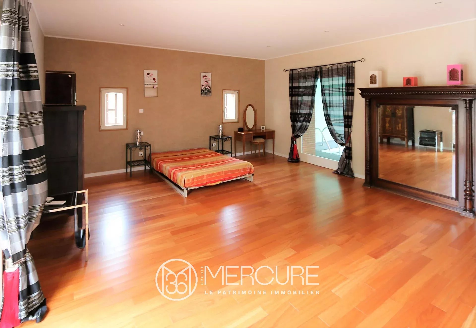 Ground floor: Large living room of 52 m² with its original fireplace , fully equipped kitchen, master suite of 60 m² with bathroom, dressing room, toilet and with access to an indoor pool.