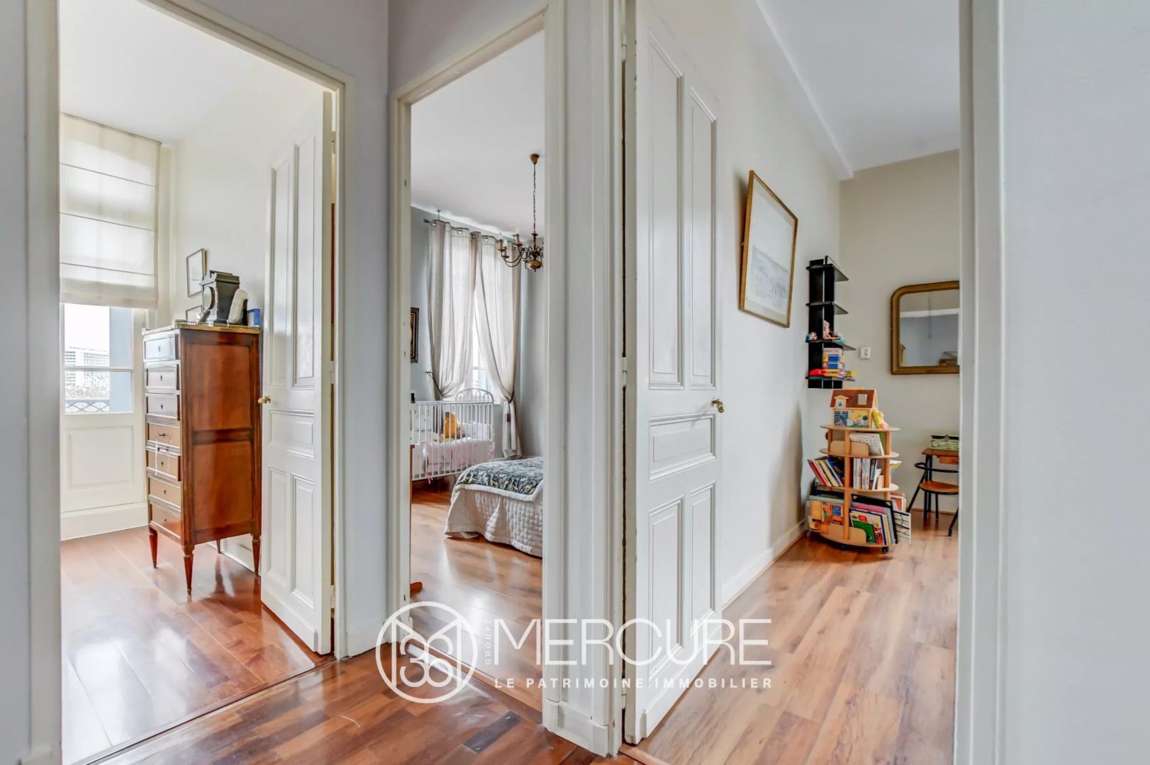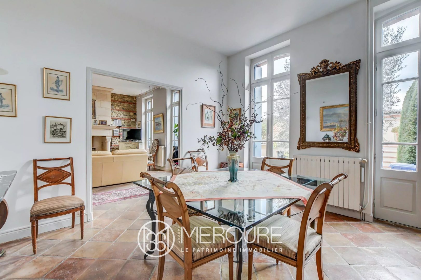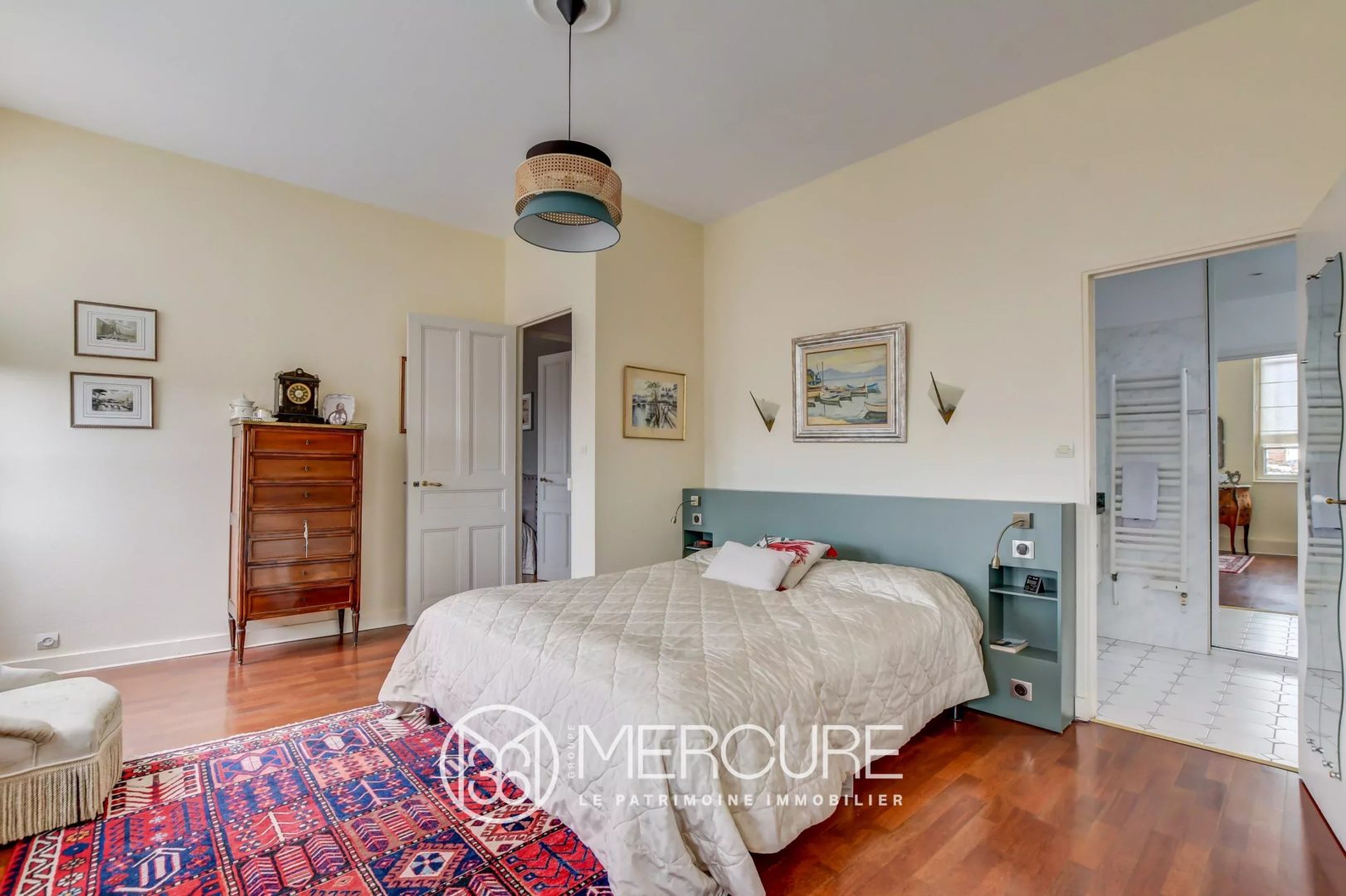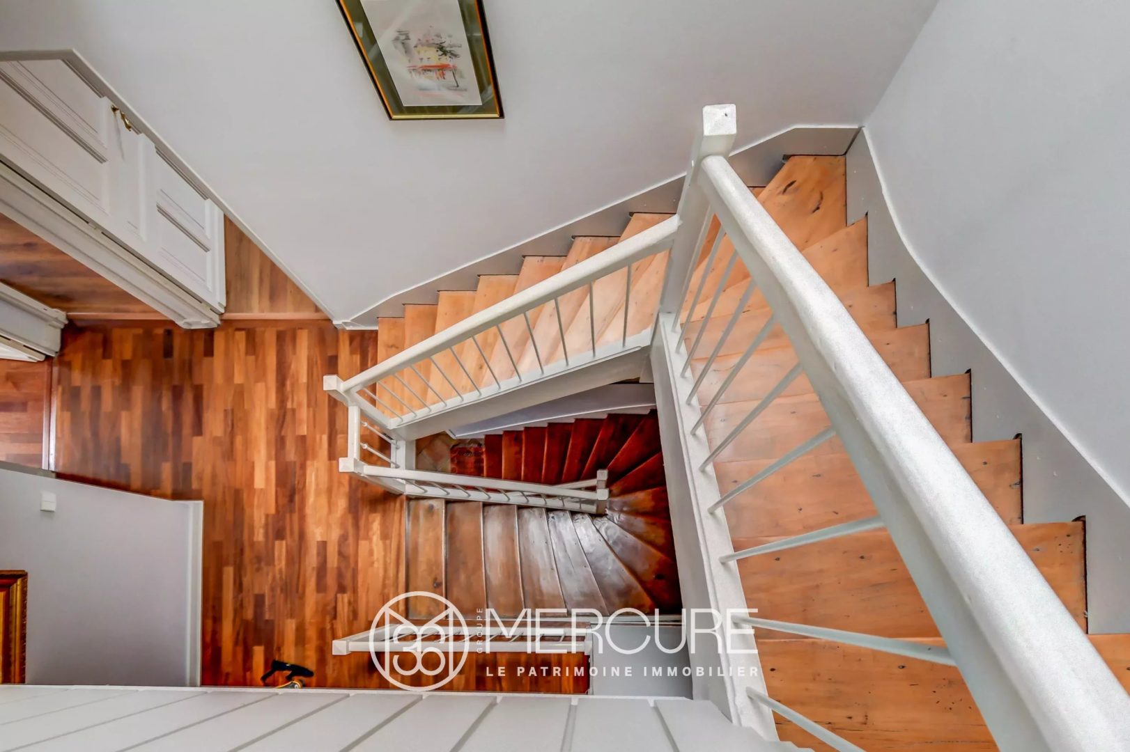 Luminous thanks to its 10 bay windows and large brick facade, the ground floor comprises a large double living room with fireplace, a dining room and a separate kitchen that can be opened.