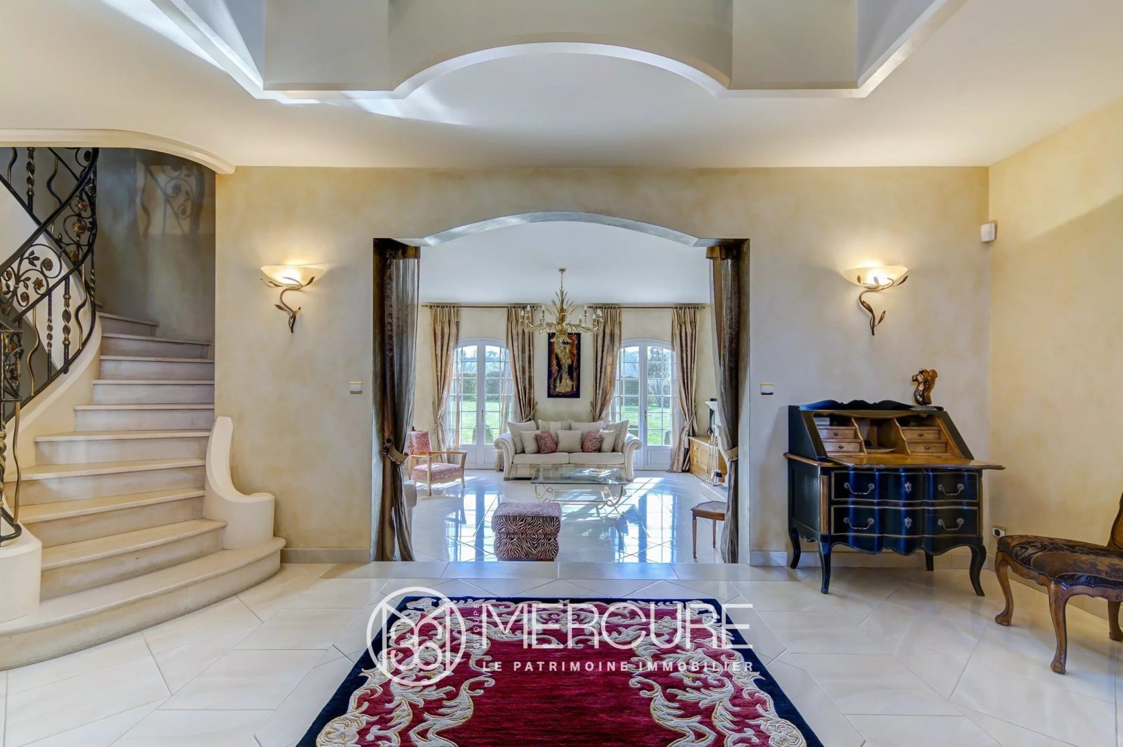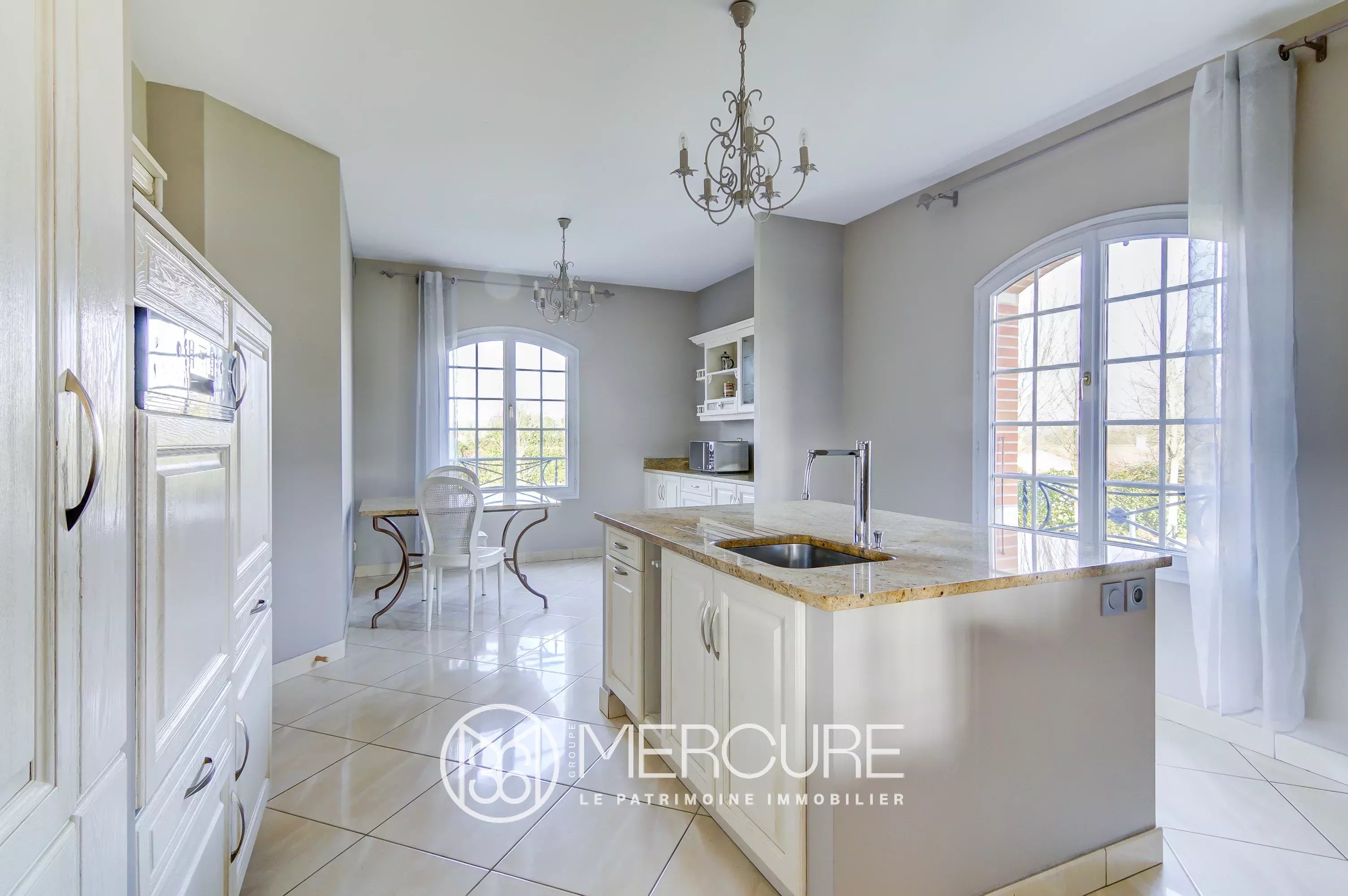The spacious and luminous rooms are well arranged around a large entrance hall, opening onto the living room. Laundry, kitchen and dining room on one side, office and large master suite on the other.