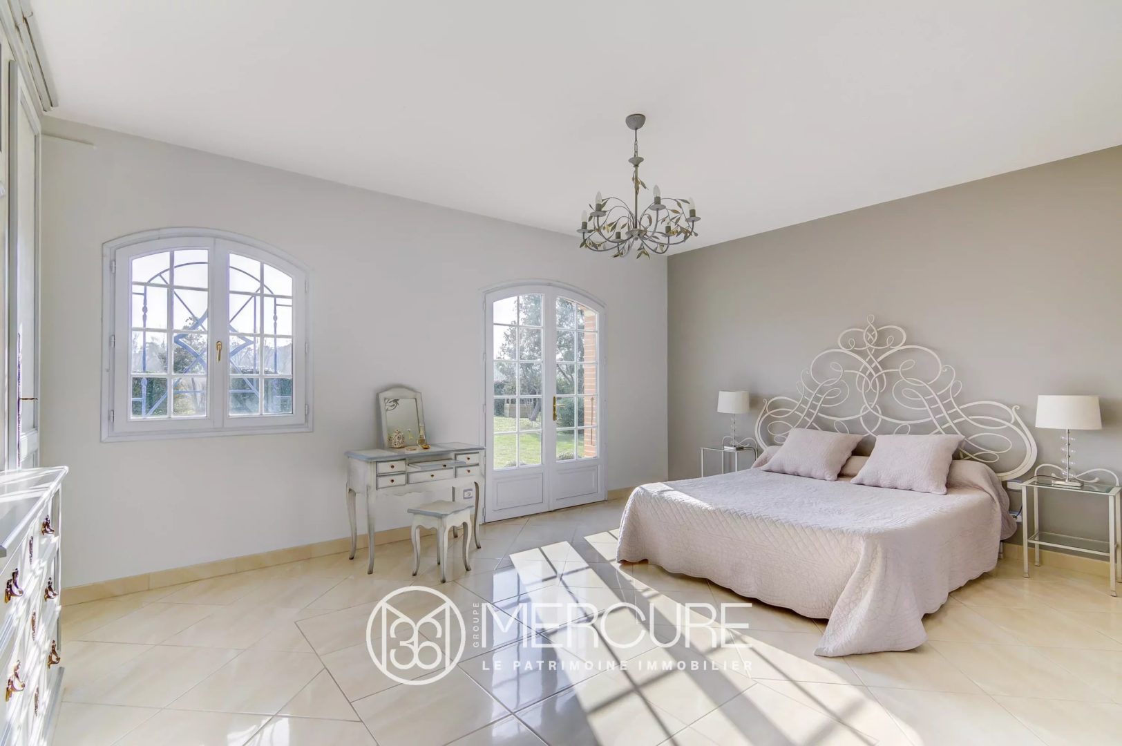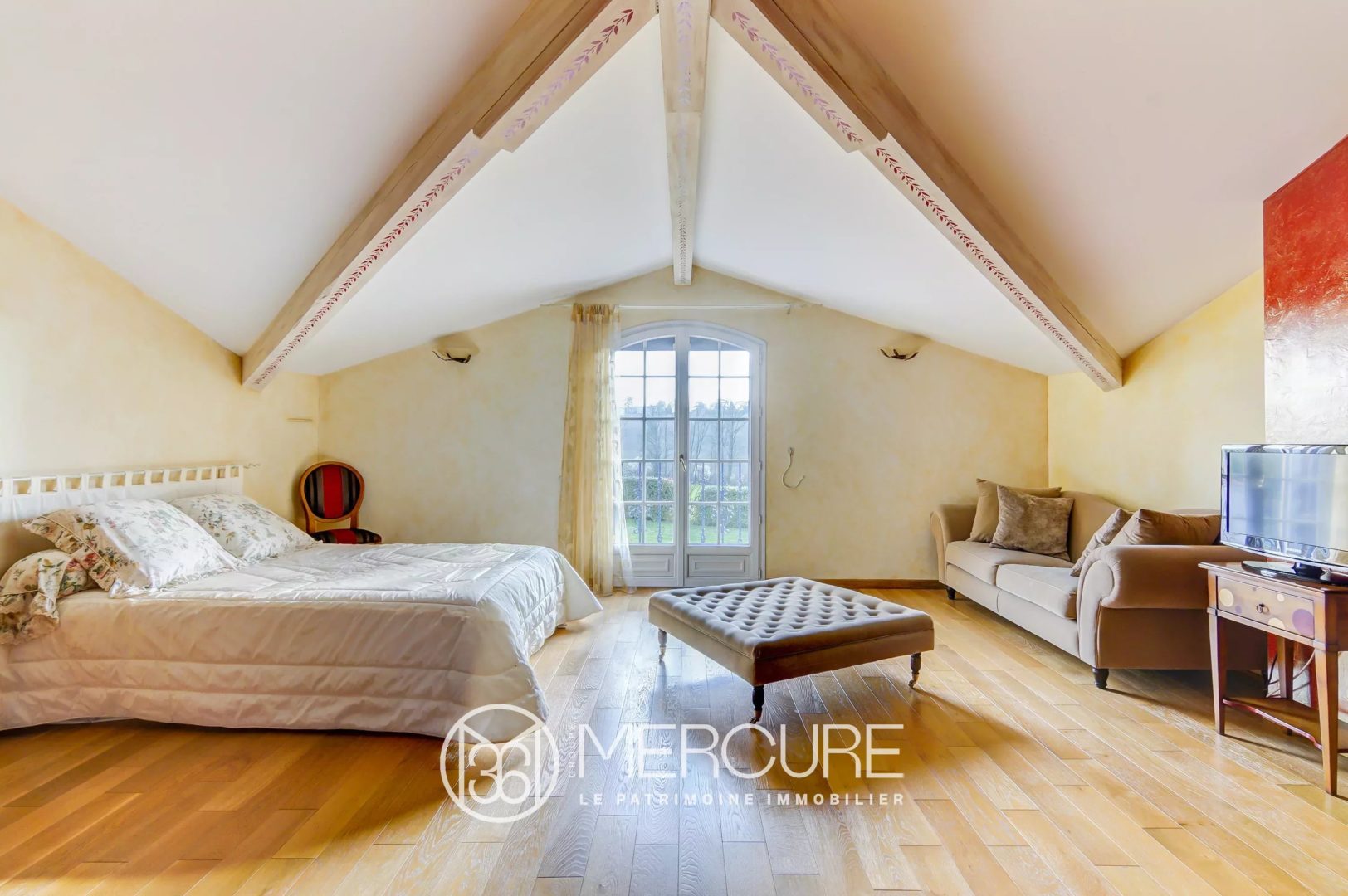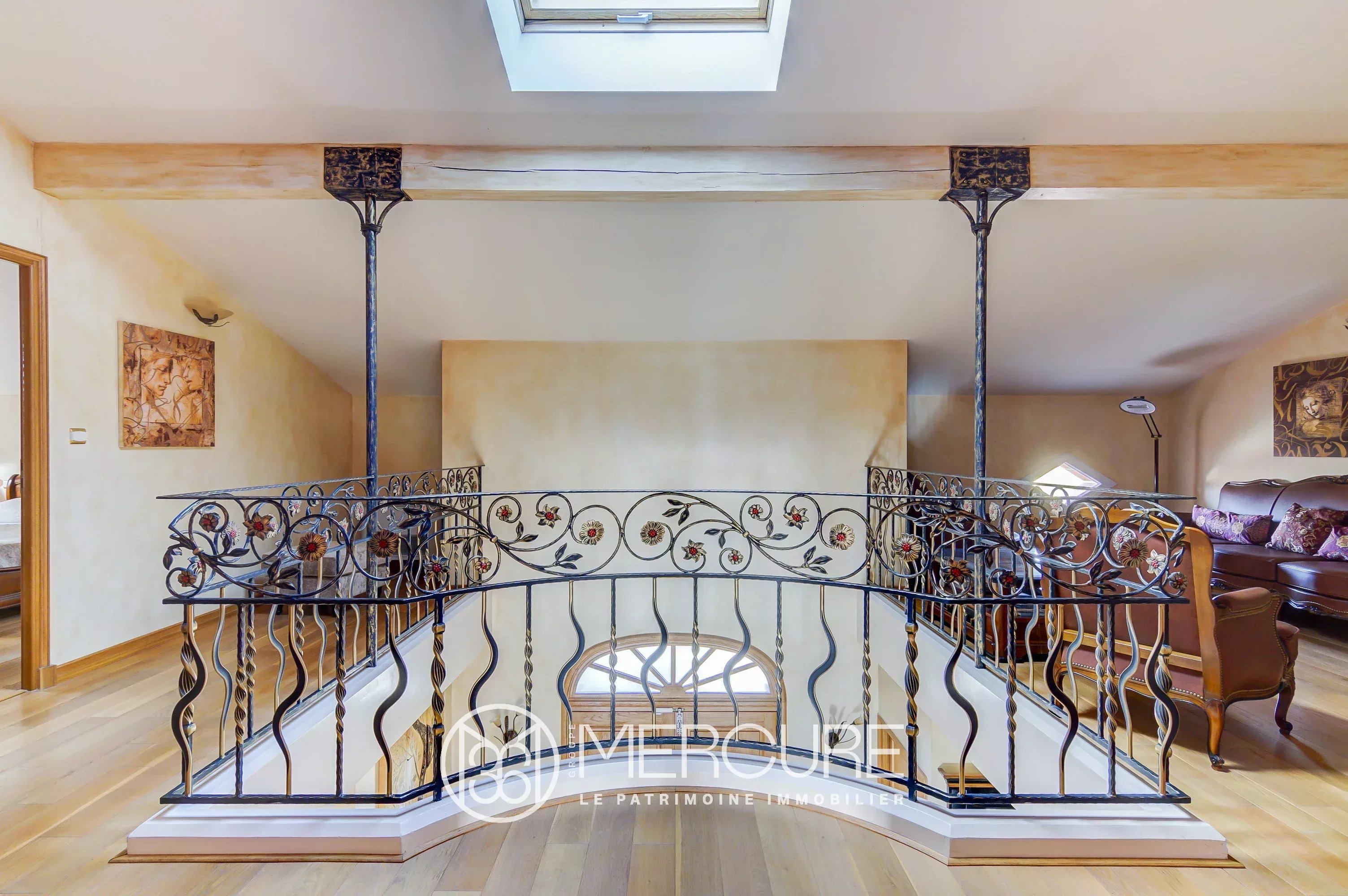 A beautiful stone staircase with a wrought iron balustrade gives access to the first floor, with a new master suite, a third bedroom with its shower room and a study. On the same landing, a corridor leads to two more bedrooms and a shower room.