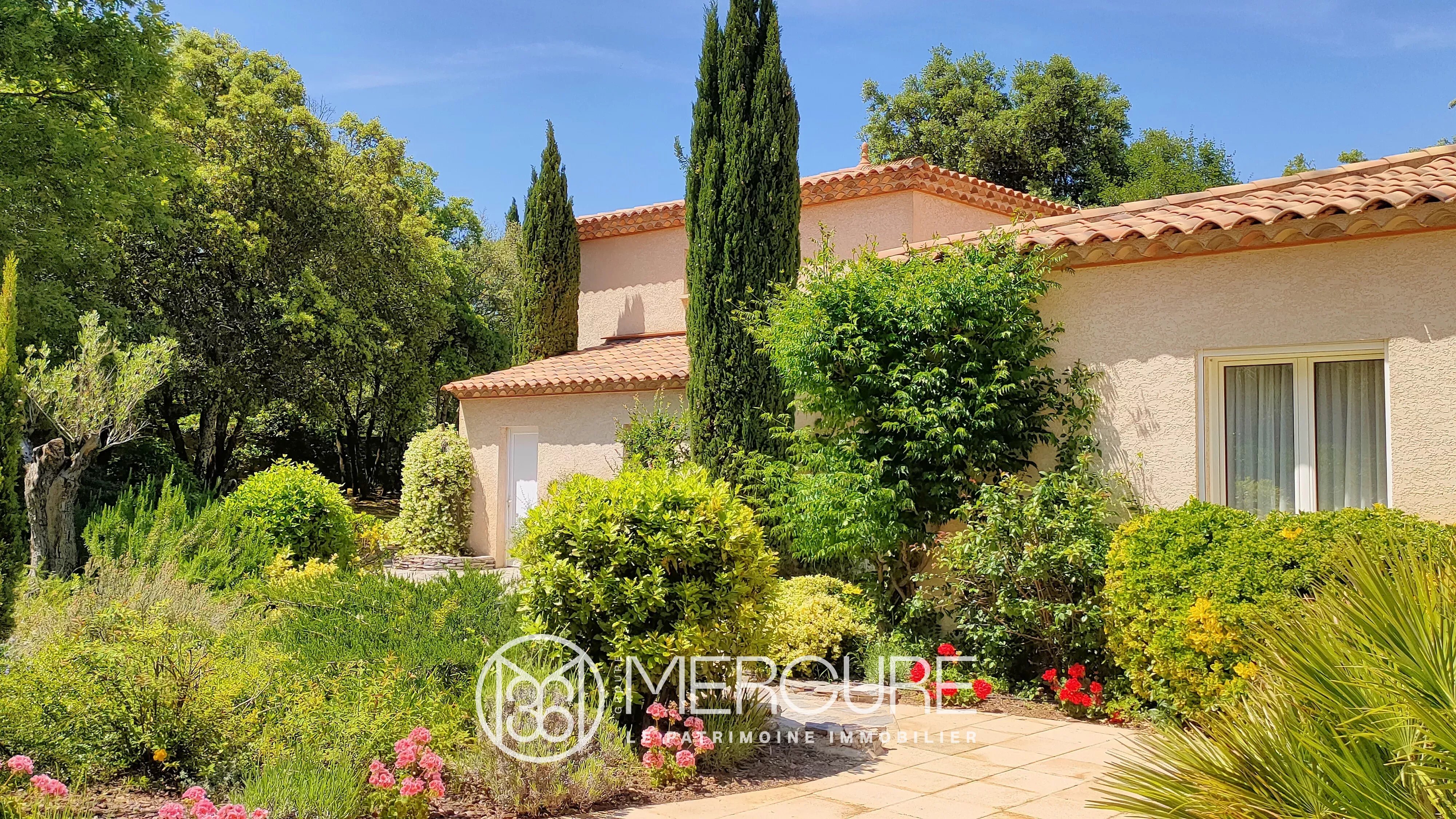 The light-filled Provencal kitchen, the convivial dining room and the living room with its stone fireplace provide a warm and welcoming environment. The villa boasts 5 bedrooms, including a master suite and two ground-floor bedrooms, each with en-suite shower rooms. In addition, a fully finished basement houses a wine cellar, multimedia room, fitness room and other leisure areas.
