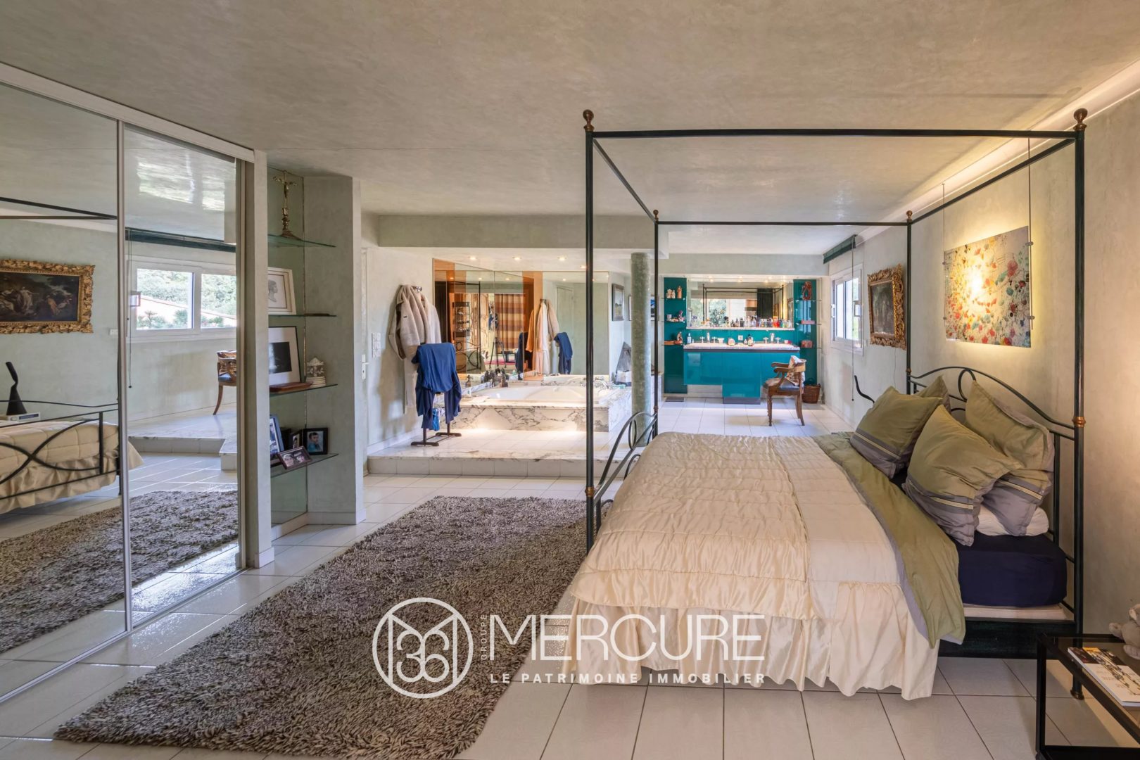 The space thus created plays with transparency. The property opens onto a superb 2,020 m² garden, where no detail has been left to chance. A variety of Mediterranean plants create different atmospheres from one corner of the garden to another. A beautiful 13×8 m swimming pool and a covered, fully equipped summer kitchen adjoining the house add to the charm of the place.