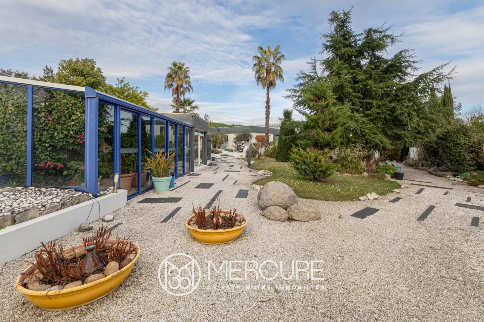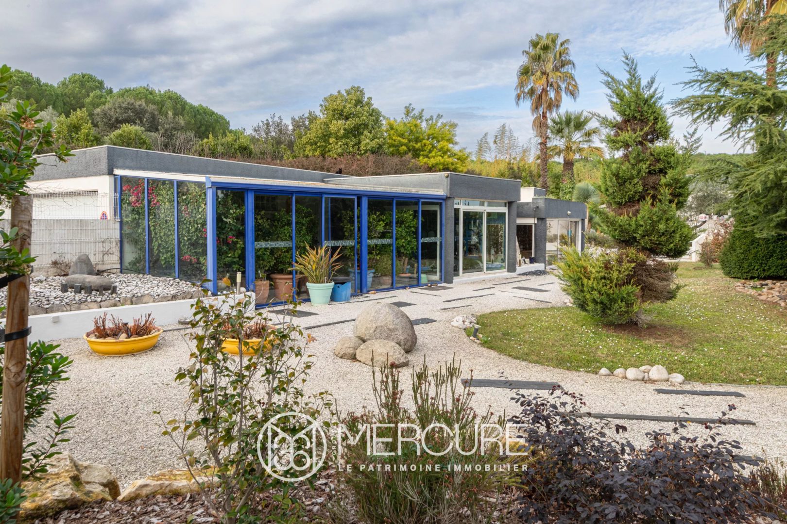 Ideally located equidistant from Montpellier, Nîmes, and the beaches, here you can admire the remarkable work of a leading architect from the region, who designed the different levels of the house around a large glass roof.