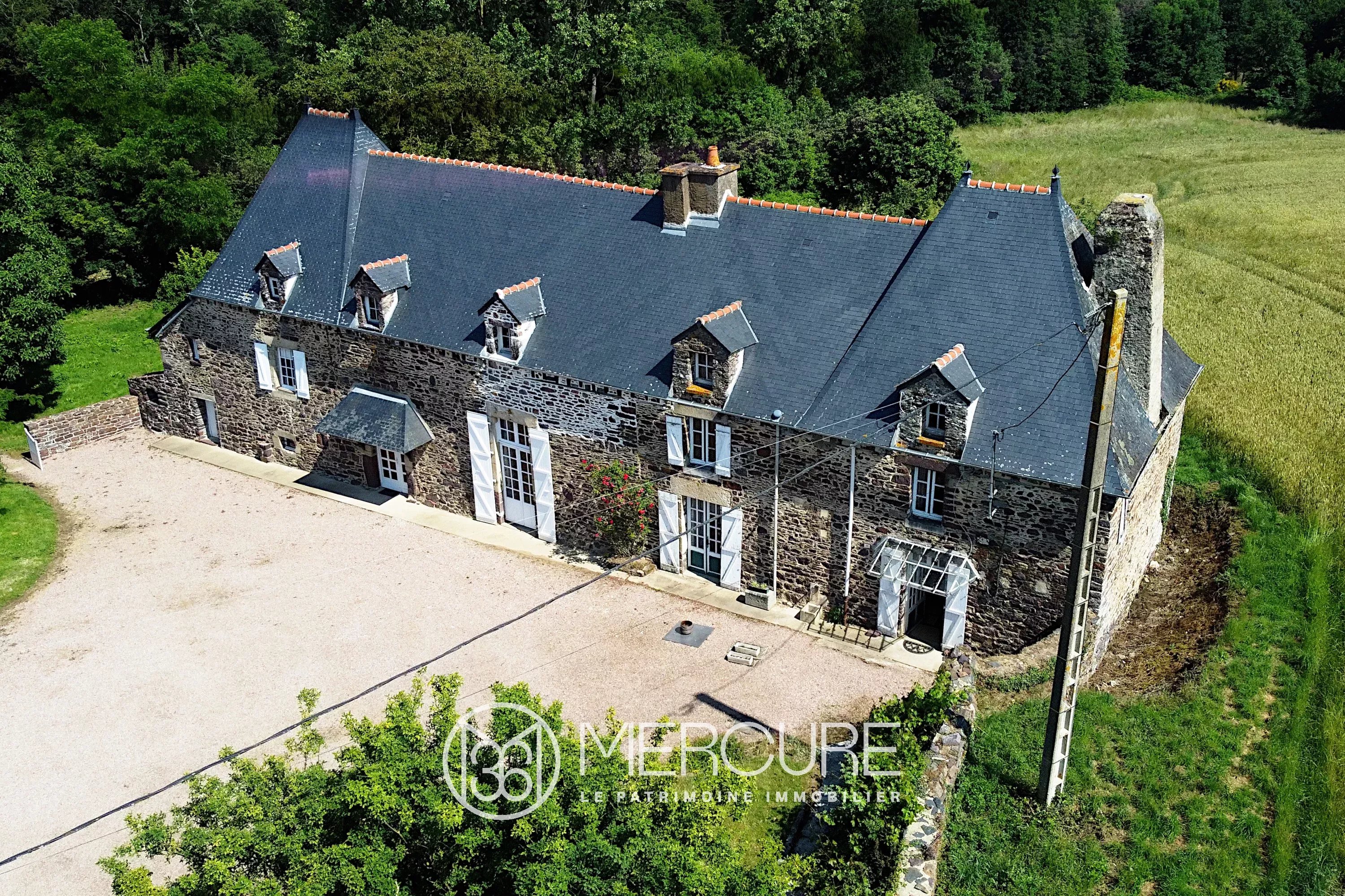 Facing the courtyard, there are two beautiful outbuildings. Behind the manor, there is a large orchard that slopes down towards the river.