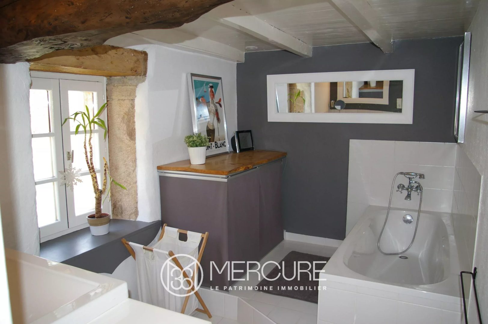 In a quiet village near the medieval town of Cremieu, lies a lovely house in yellow stone. It has 3 bedrooms, an office and is authentically renovated. It lies in a broad surface of 1,776 sq. ft. and has 3 levels. It comes with a wooded and cleared land of 0.3 acre with convertible outbuildings, garden, aboveground pool, and furnished garden hut.