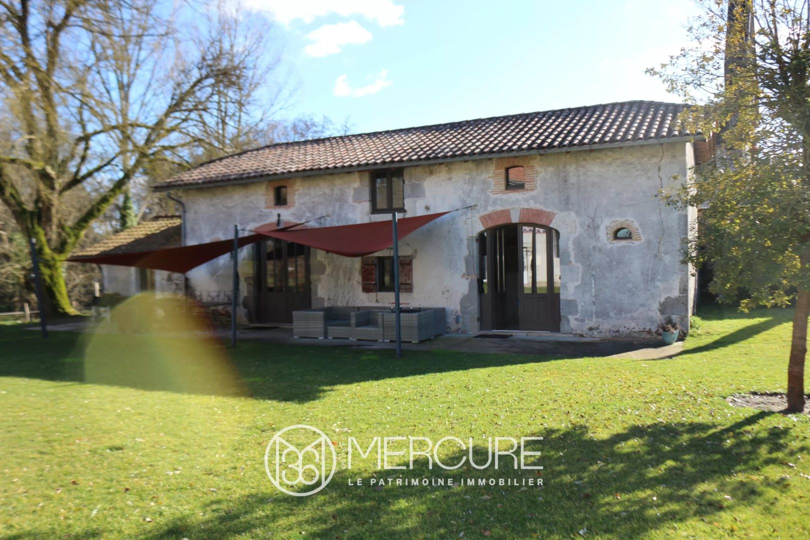 Village house with guest house and outbuilding set in 2,925 m² of wooded garden in Lot-et-Garonne, close to the town of Casteljaloux with its thermal baths, casino and shops.