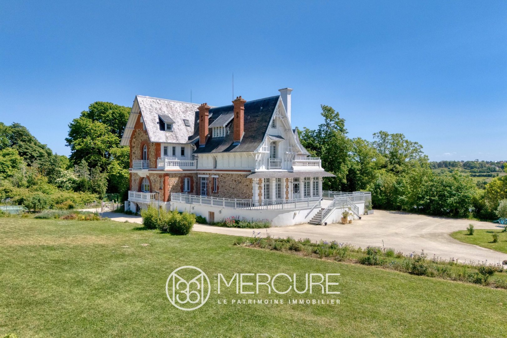 The Villa Bonheur available today was once known as Château Bonheur. Originally named Castel des Petits Champs, it was purchased in the 1920s by Georges Bonheur, an industrialist and businessman, who expanded and transformed it. Bankrupted in 1934, he sold the property to the city of Gennevilliers, which turned it into a holiday camp. In 2005, it was sold to the city of Granville, and the estate was then split in two: one part became a leisure center and music school, which now bears the name Château Bonheur. The other part was sold to a developer in 2009, though the project was never completed. It was bought and restored in 2020 by new owners and is now known as Villa Bonheur.