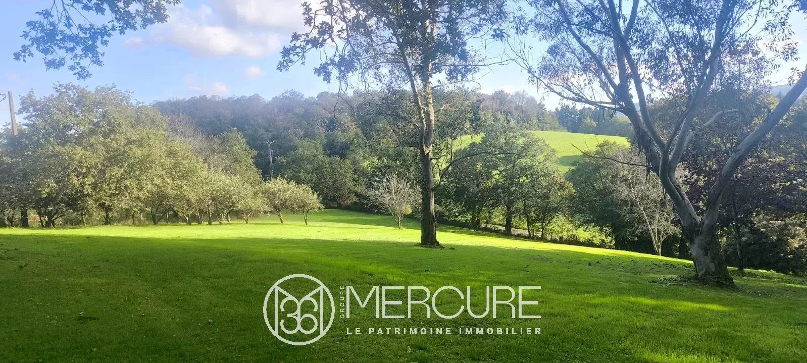 The landscaped gardens are filled with fruit trees and raspberry bushes, with the owners producing exquisite homemade apple juice. A prefabricated metal garage sits within the vegetable garden area, and the property offers stunning views over the surrounding countryside—ideal for enjoying sunny days in peace and privacy.