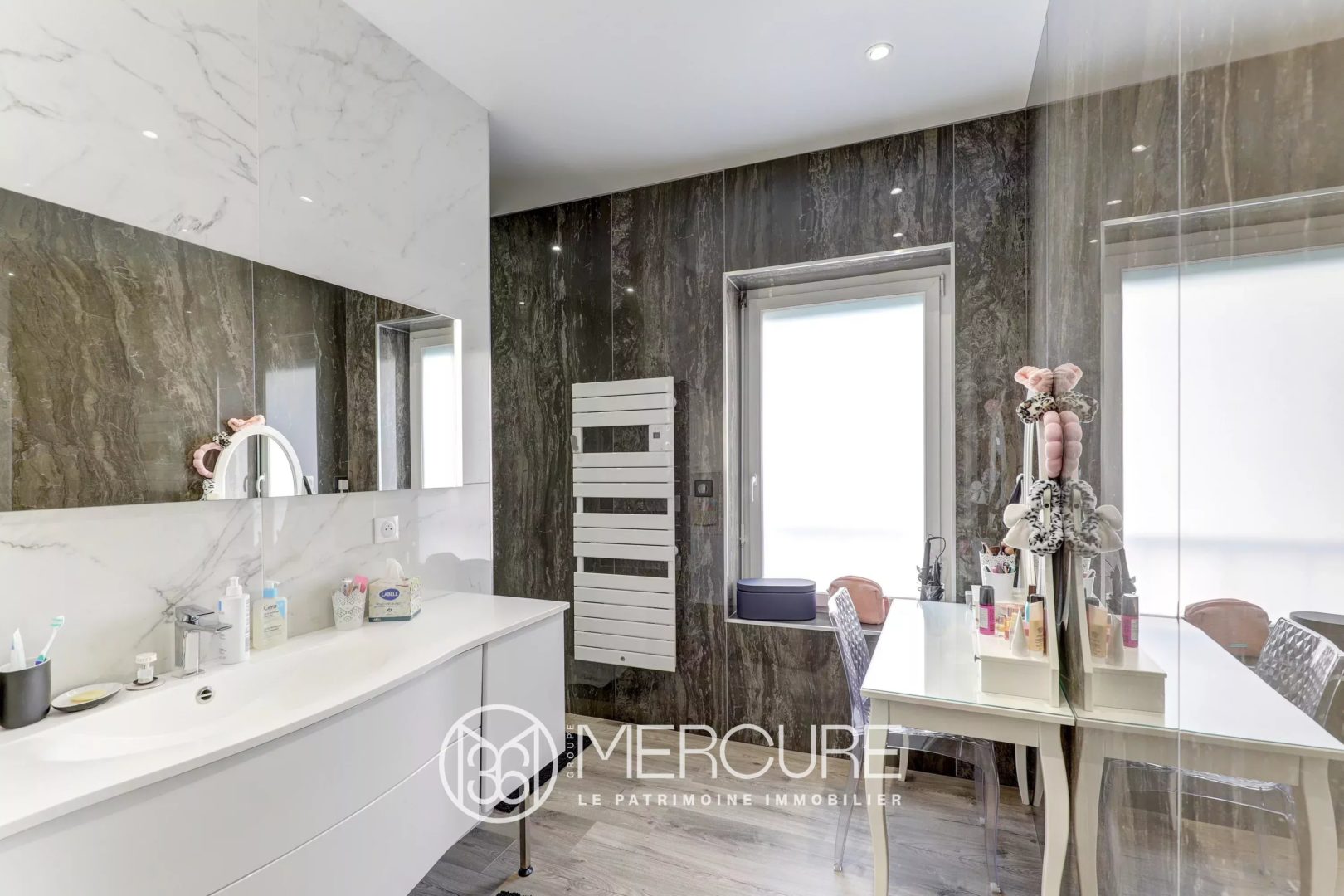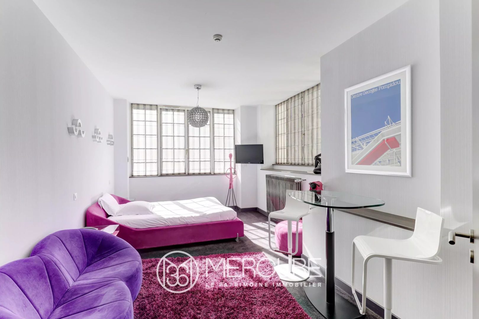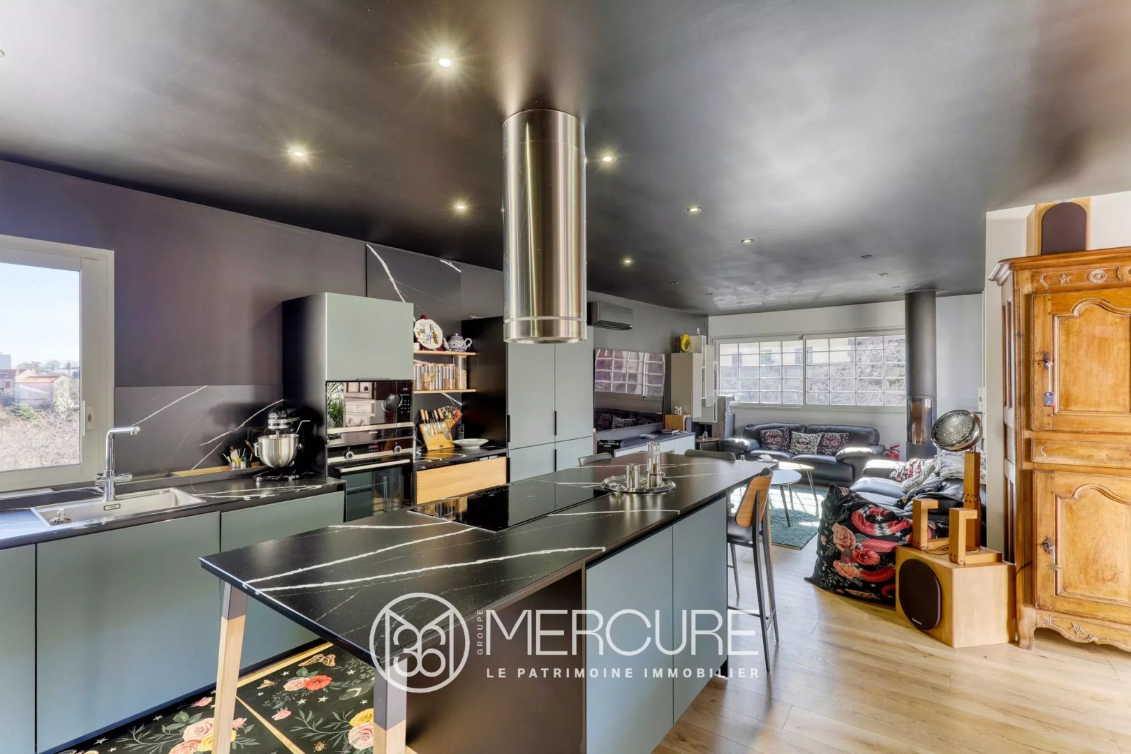 At the top of the building, a fully renovated 92 m² private apartment opens onto a 28 m² terrace with jacuzzi, enjoying open views towards the iconic Puy-de-Dôme.