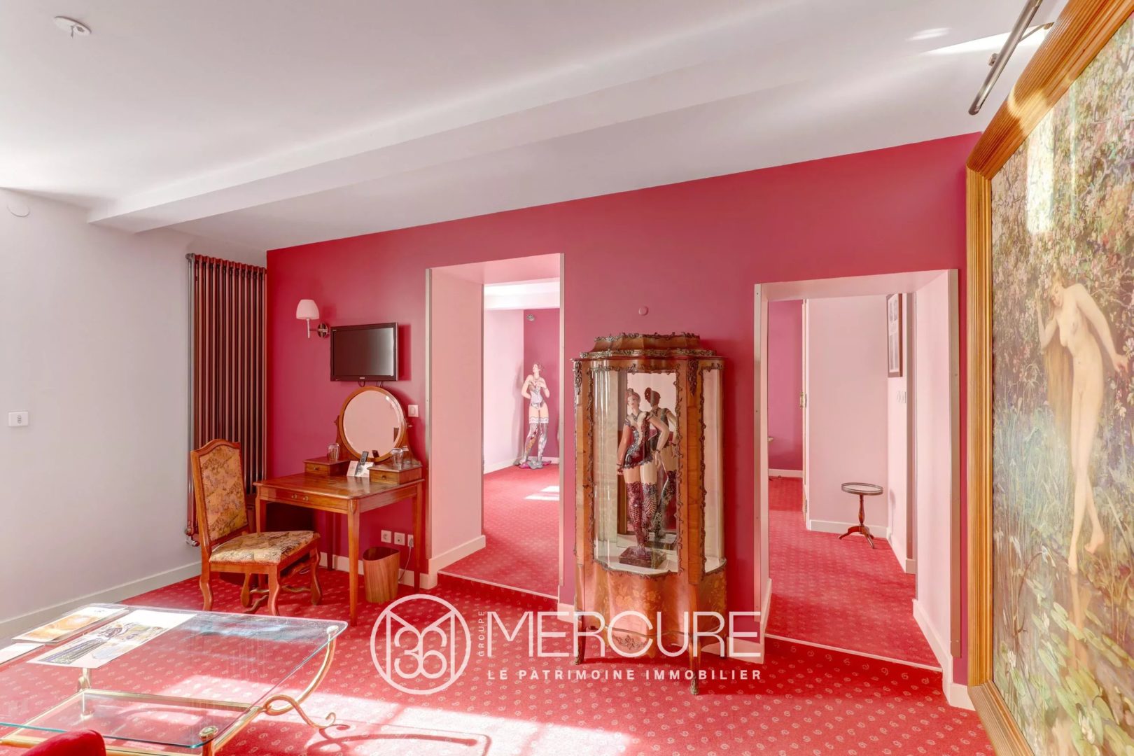 Offering approximately 760 m² of space, complemented by 240 m² of basement areas (garage, cellars and service rooms), the property combines historic character with significant development potential. It currently features four refined guest suites, a gastronomic restaurant with professional kitchen, and additional areas allowing the creation of three to four further guest rooms.