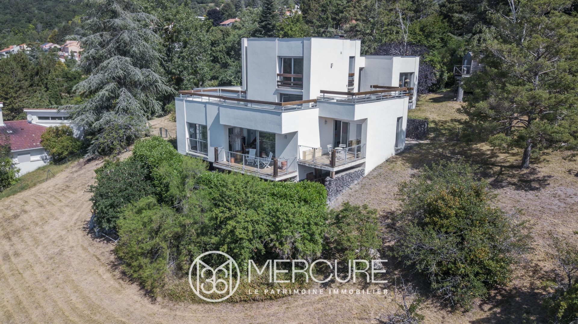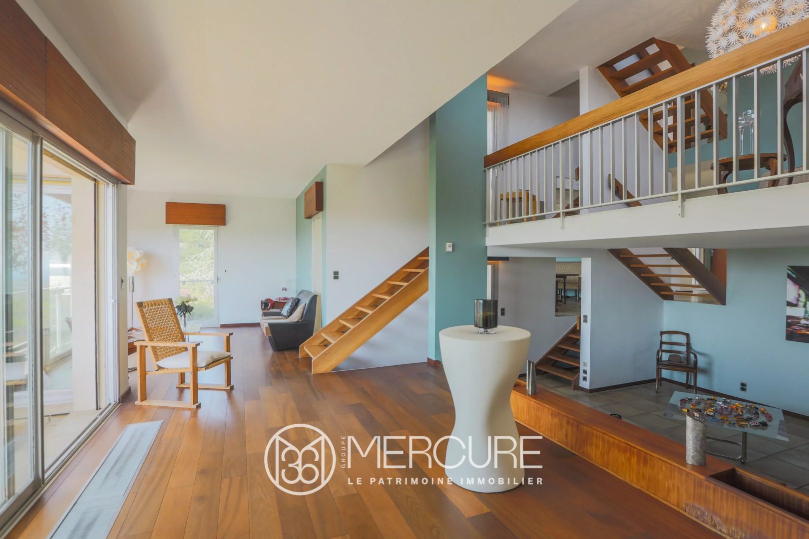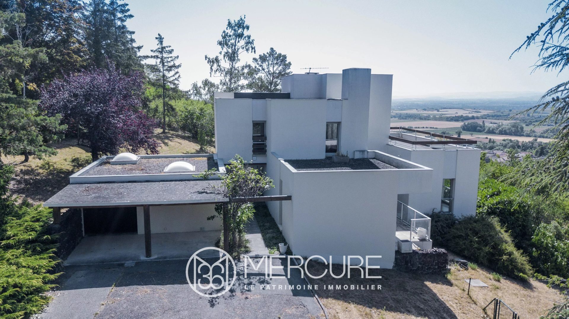 Located on the heights of a sought-after residential neighbourhood in Châtel-Guyon, this exceptional architect-designed house built in 1976 by Émile Boilot offers breathtaking panoramic views of the Forez mountains, the Limagne plain and the Chaîne des Puys. Set in a peaceful, green environment on the edge of a nature reserve, it enjoys a privileged location free from any nuisance.