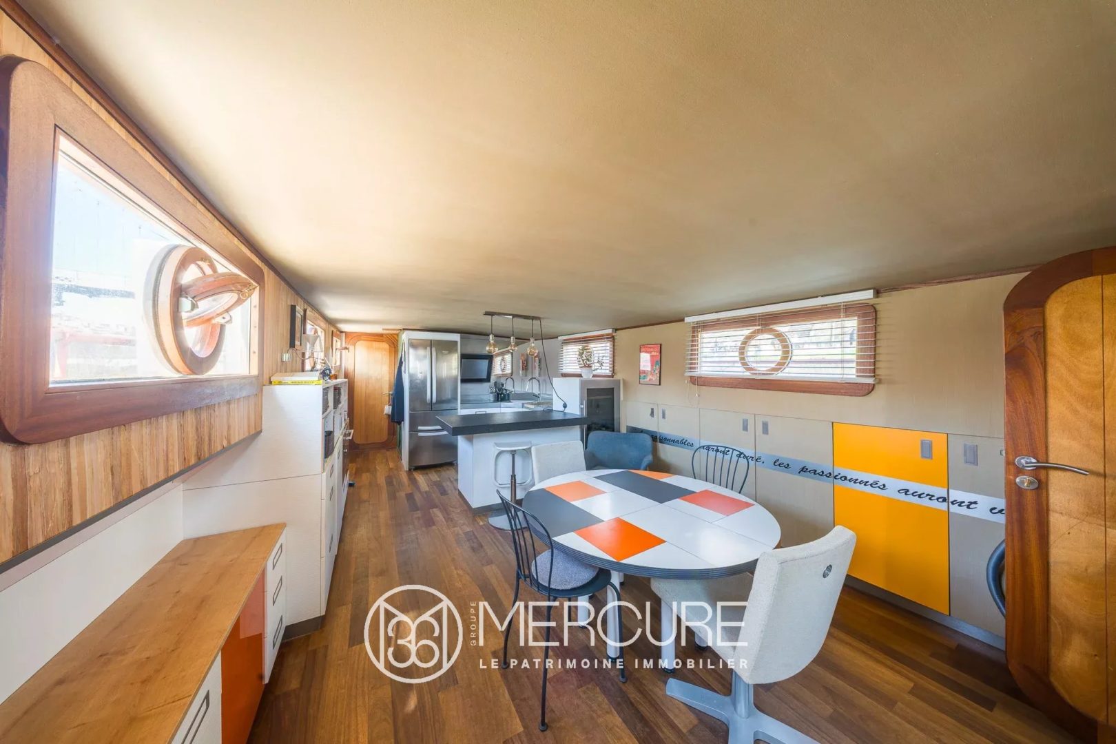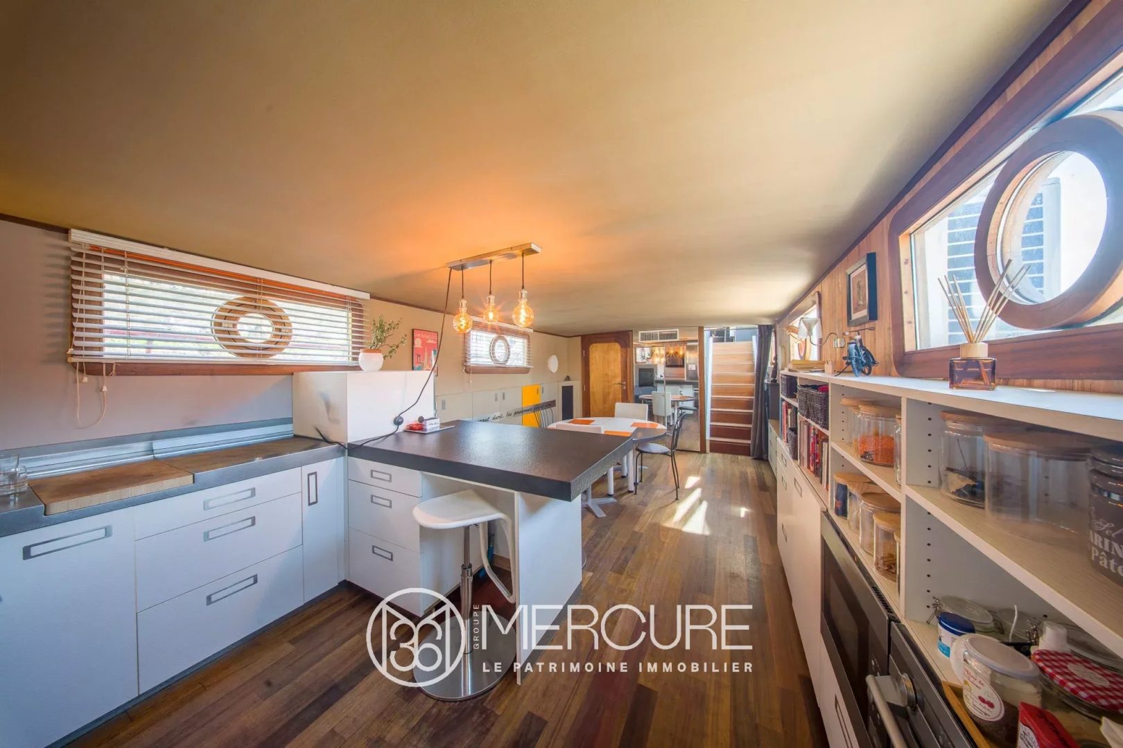Experience the extraordinary every day on this 110 m² houseboat offering a unique living environment on the Rhône opposite the Presqu’île.