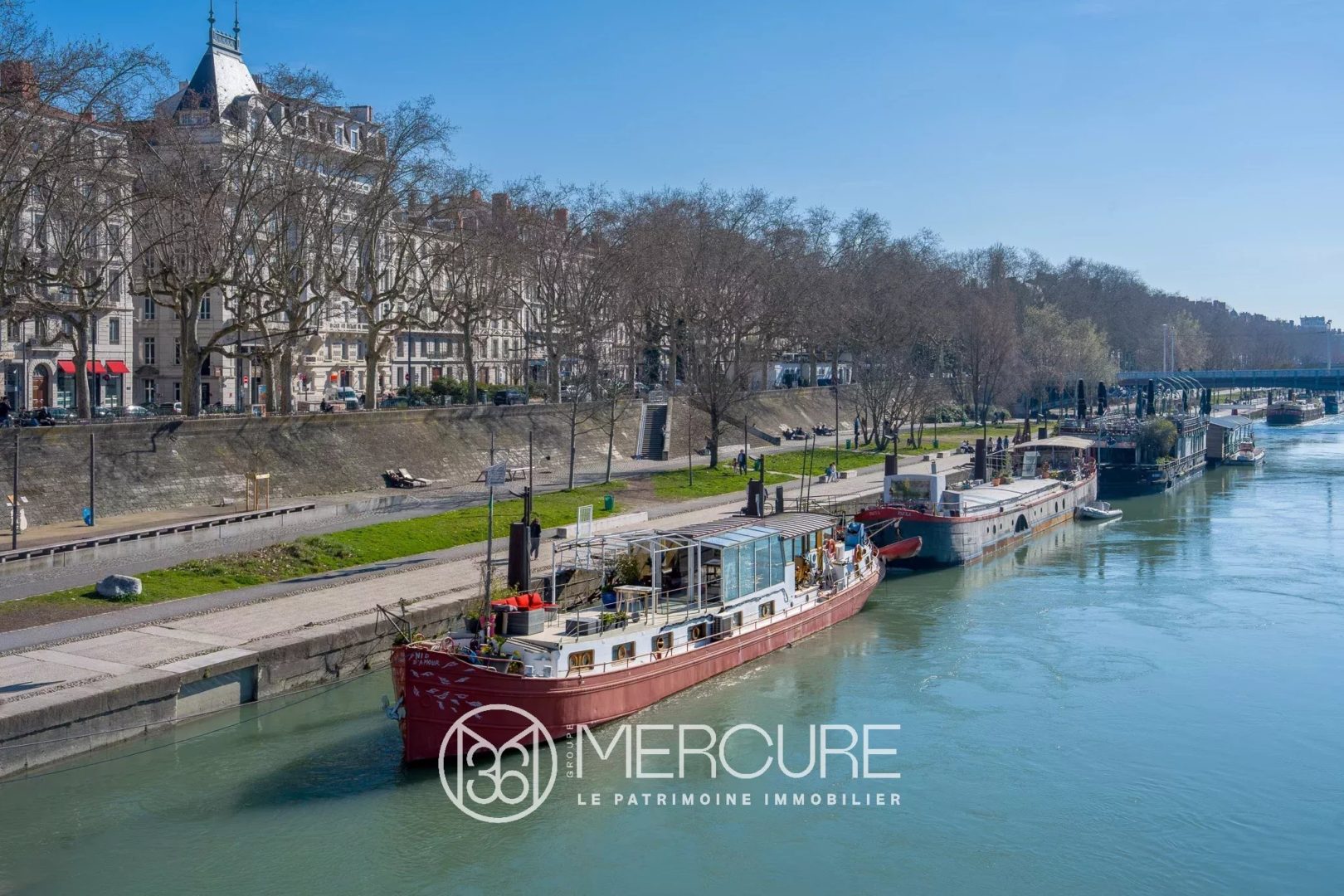 Living on the water in the heart of Lyon: houseboat in Lyon's 6th arrondissement, Golden Triangle, 1,181 sq ft - Terrace 437 sq ft
