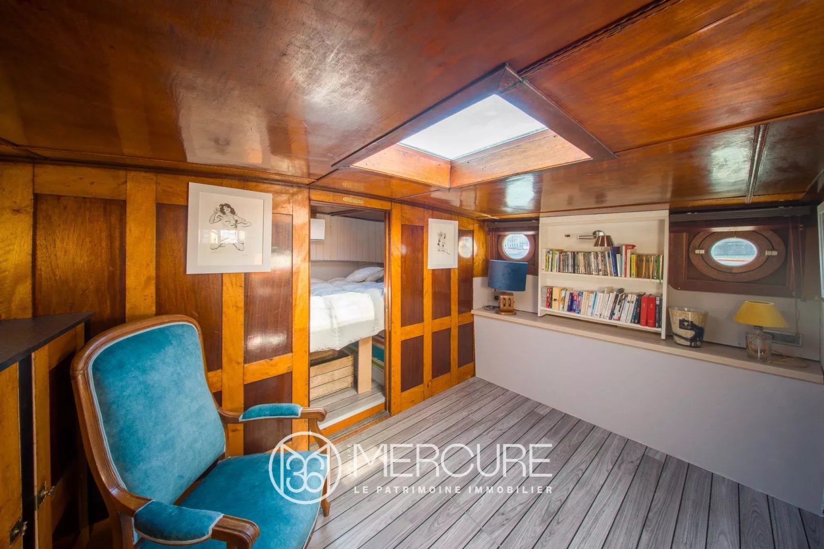 This houseboat was completely renovated in 2015 by a carpenter, an interior designer and professional companies specialising in various types of barge work, including electrical and plumbing. The boatman’s cabin retains its original character.