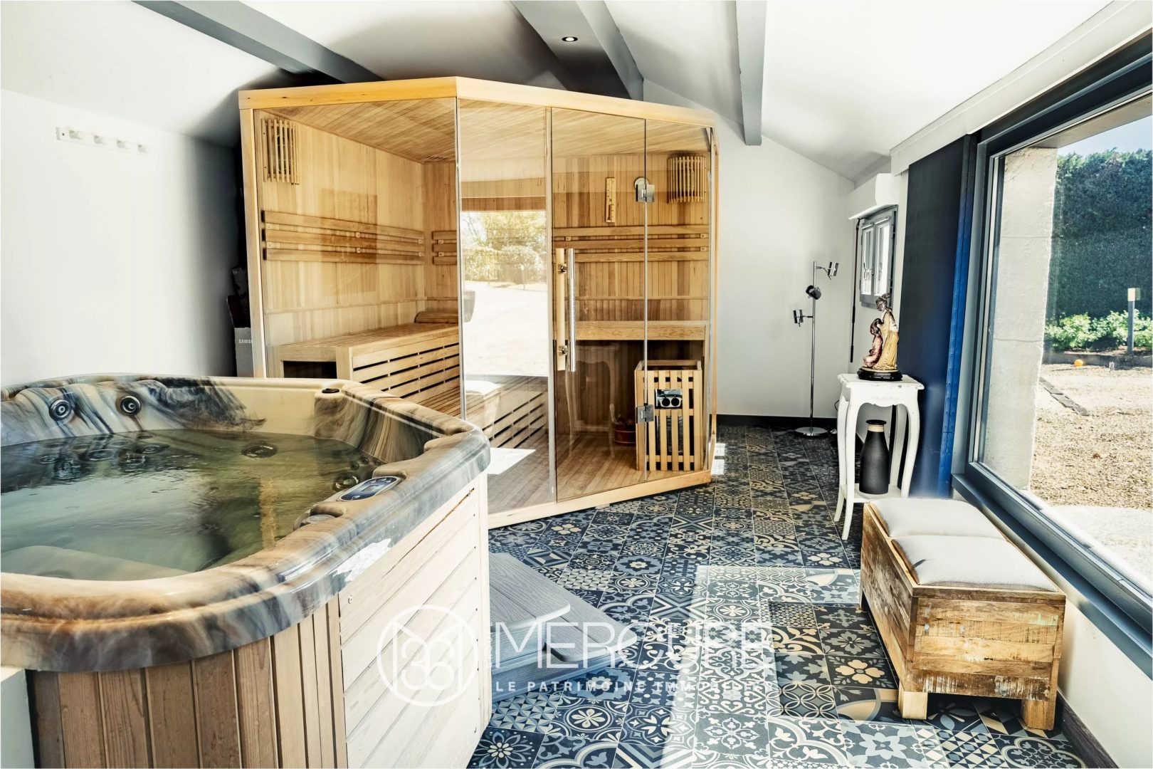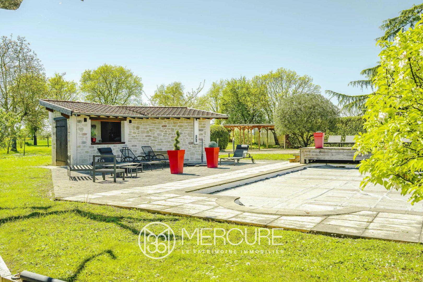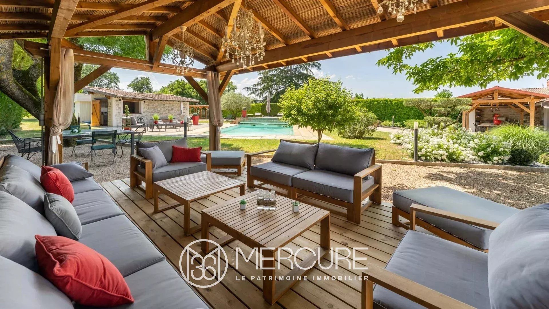 Outside, the salt-water heated pool with integrated cover, the summer lounge and the covered terrace create a convivial setting to enjoy the lush surroundings. The enclosed, tree-lined garden, complete with a well, perfectly rounds off this exceptional property.