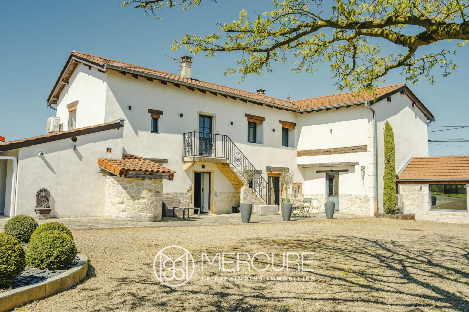 Between Belleville-en-Beaujolais and Romanèche-Thorins, 40 minutes from Lyon and 20 minutes from Mâcon-Loché TGV station, this carefully restored farmhouse combines the authentic character of the Beaujolais countryside with uncompromising contemporary comfort.