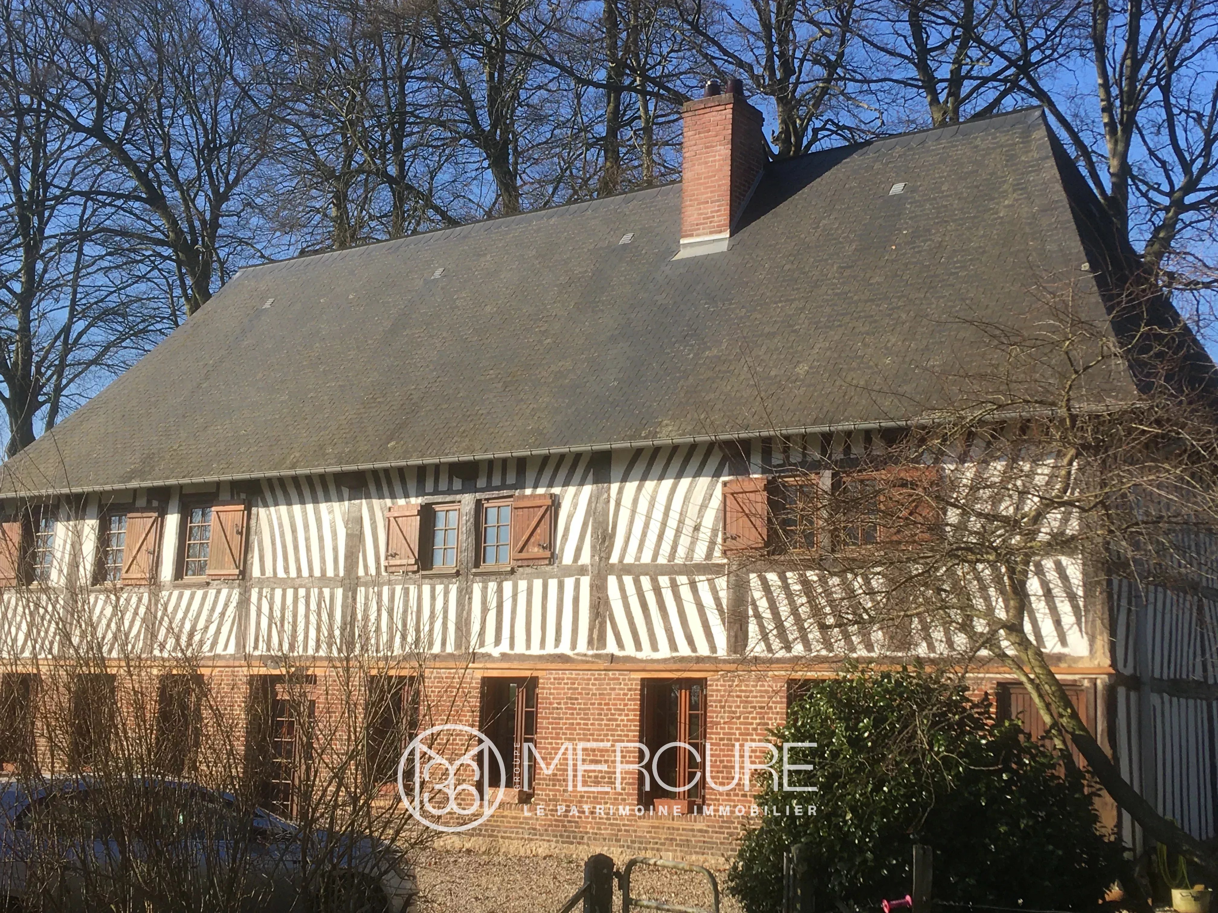 Seine-Maritime, near Bolbec, 25 km from the sea, beautiful early 19th century, half-timbered, brick and flint house on three levels spanning approx. 125 m² with four main rooms, including three bedrooms and two vast attics (approx. 50 m²) for conversion.