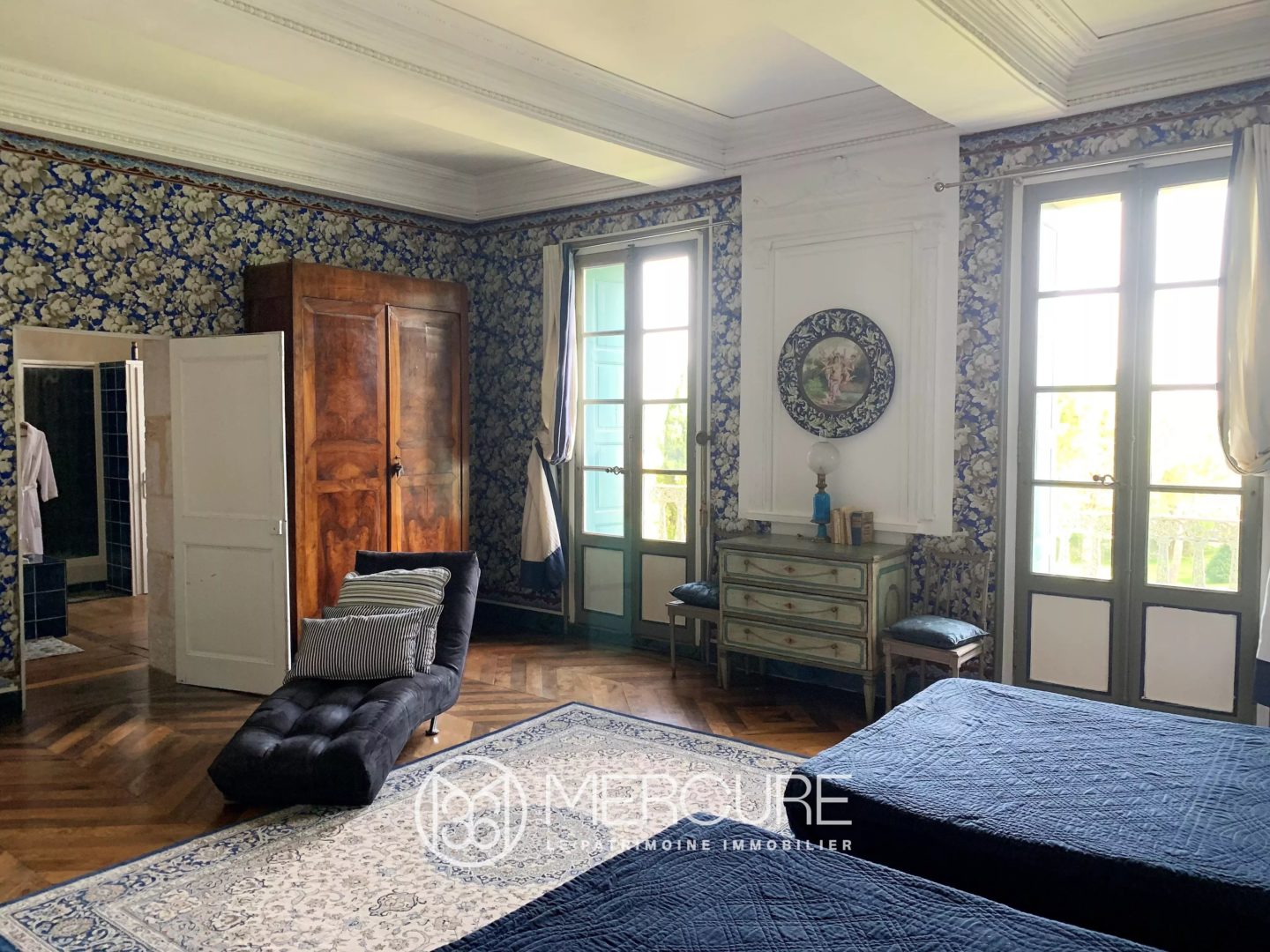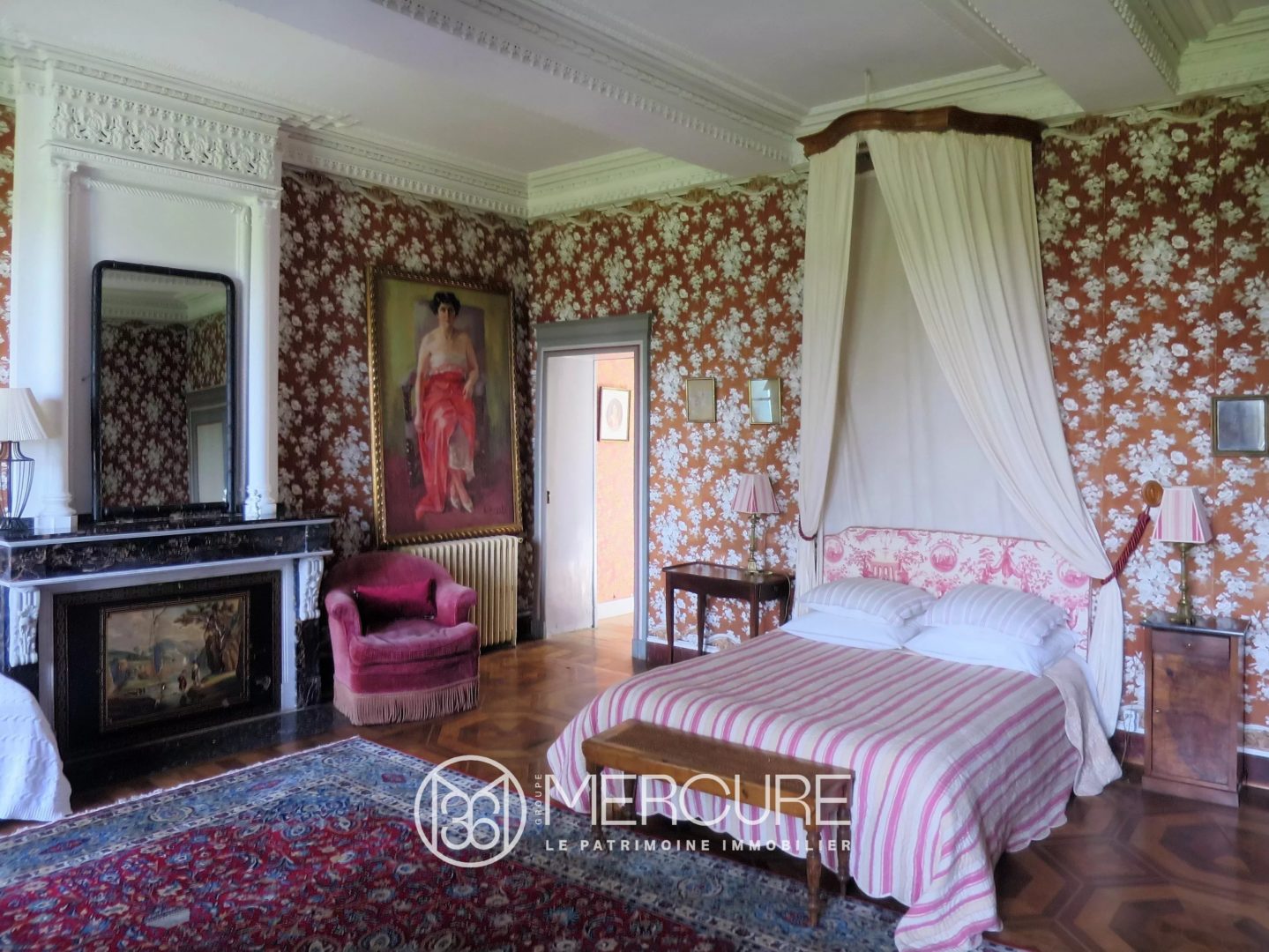 1st floor with its beautiful original features, parquet floors, wallpapers, marble fireplace and ornate ceilings: large landing of 38m²