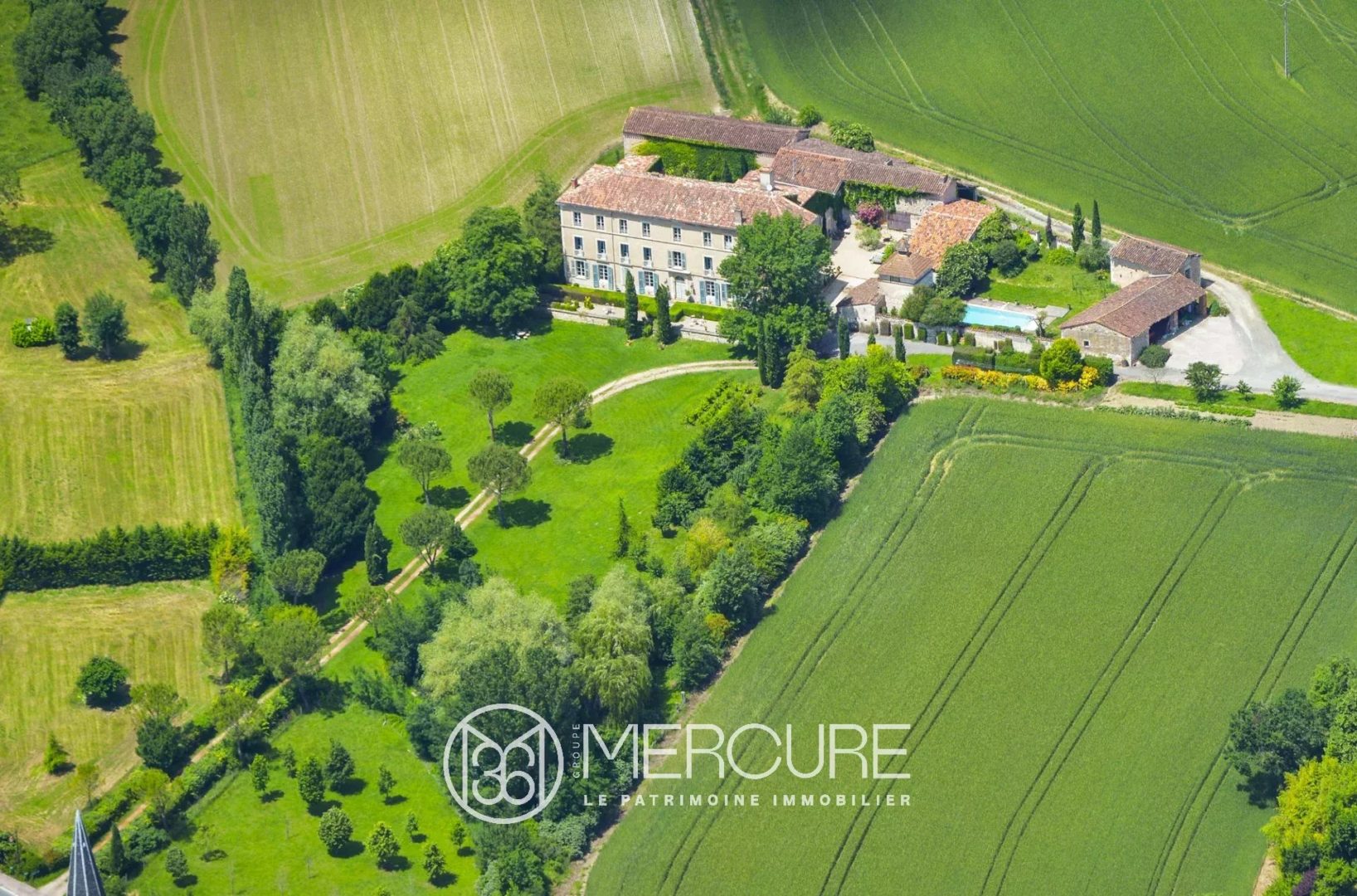 In a small quiet village, L shapped master’s house with 772 m² of living space and 21 main rooms, including 14 bedrooms, all on 3 levels.