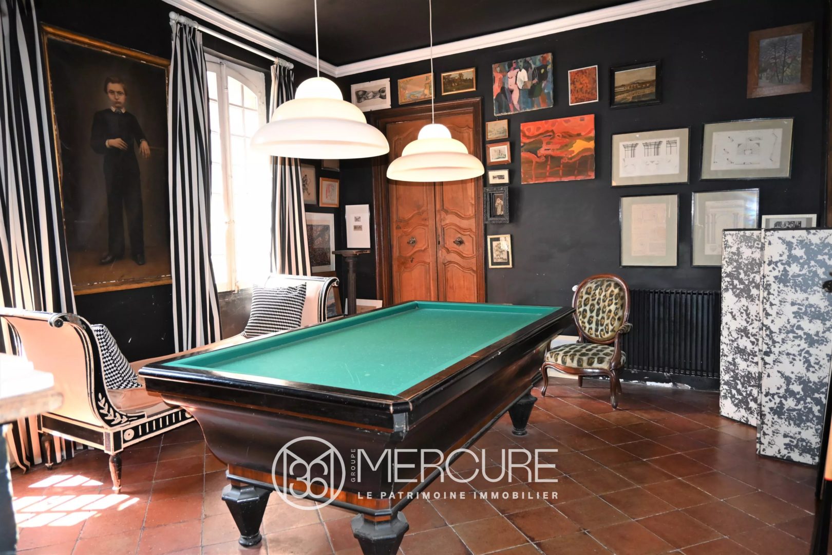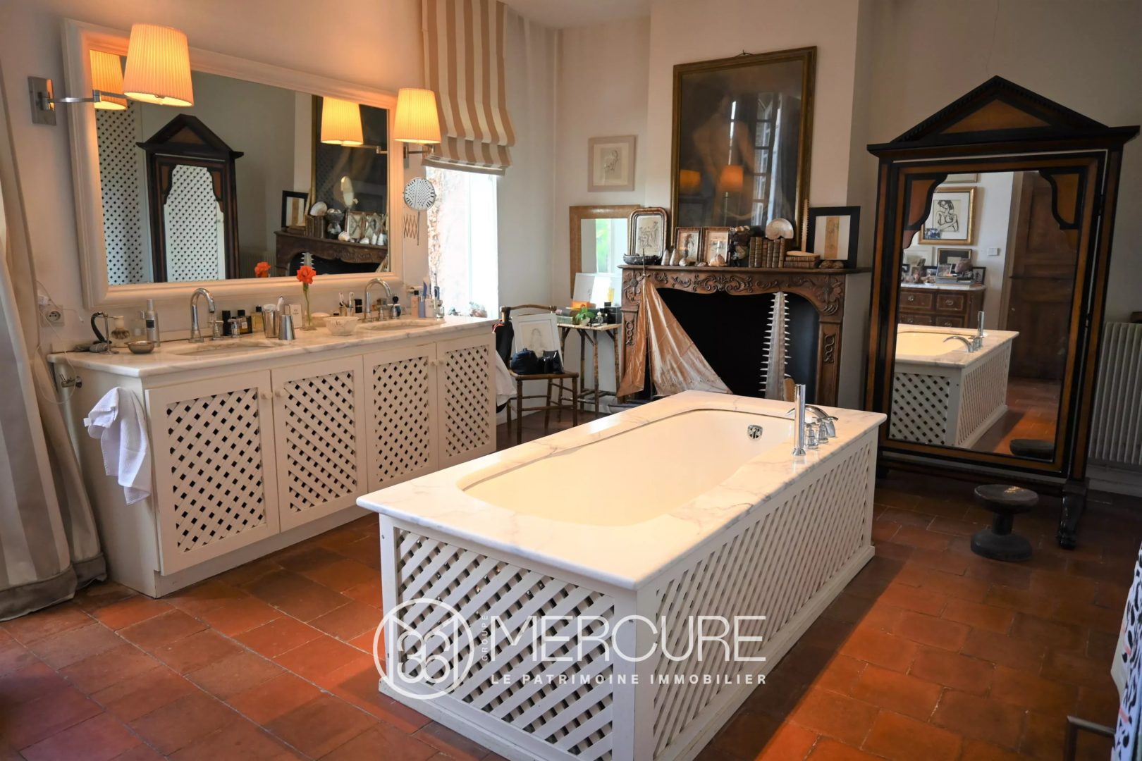 First floor: suite of 2 rooms of 23m² each, one converted into a billiard room, the other converted into a bedroom with shower room and separate toilet, suite with lounge of 25m² and library of 15m², bedroom of 27m², bathroom of 24m² with central bath, room of 28m² used as a dressing room, lingerie 15m² .