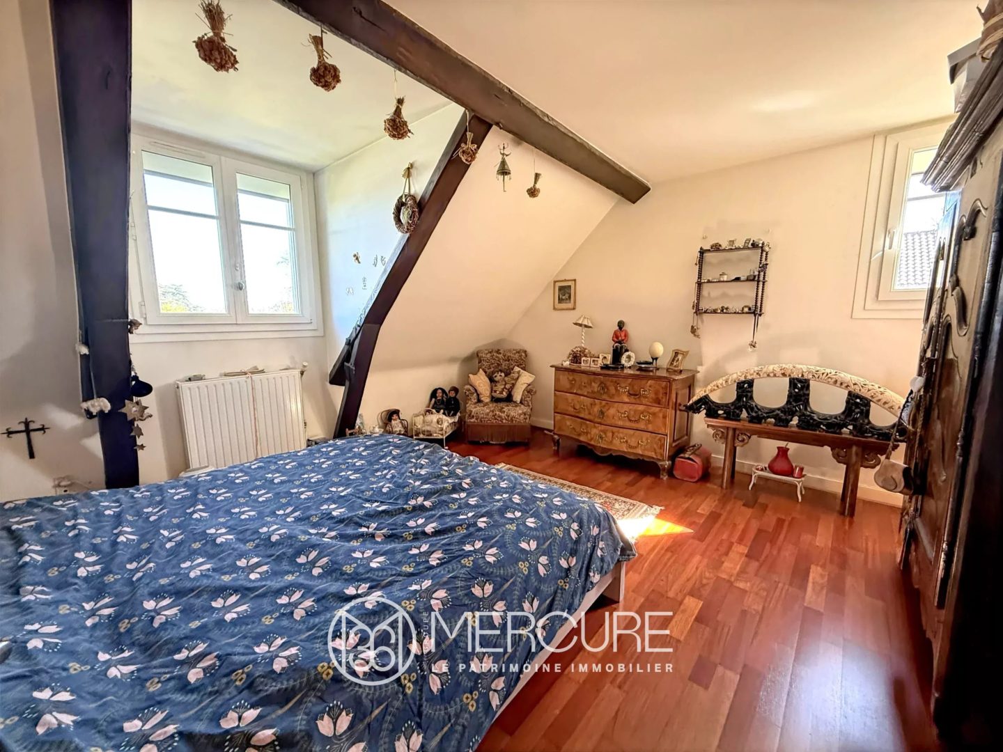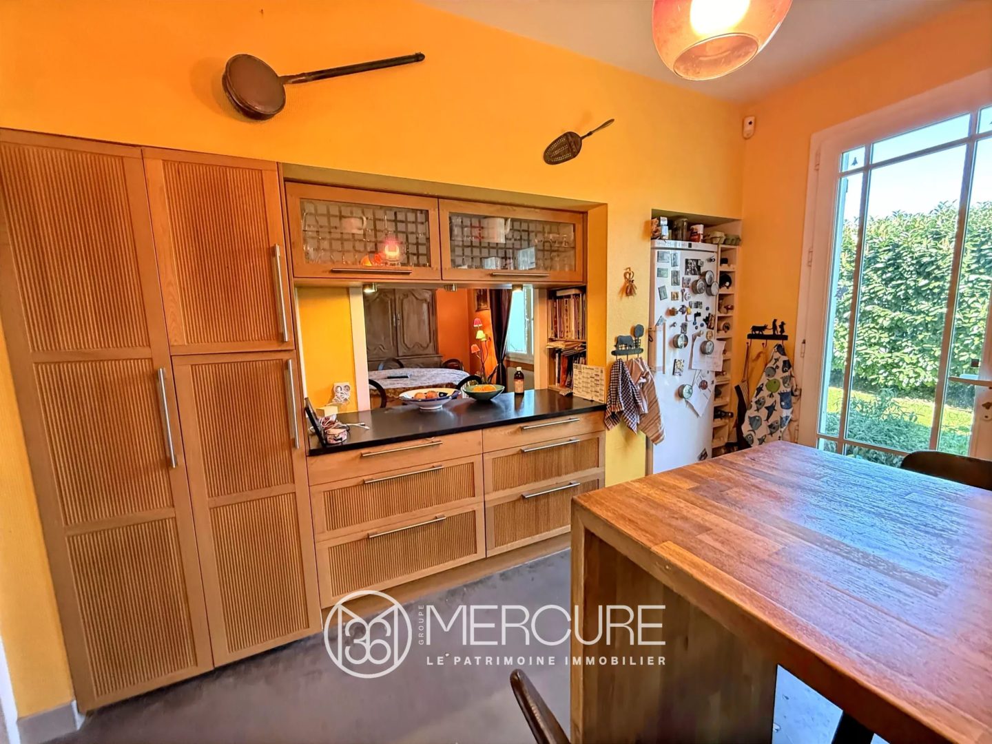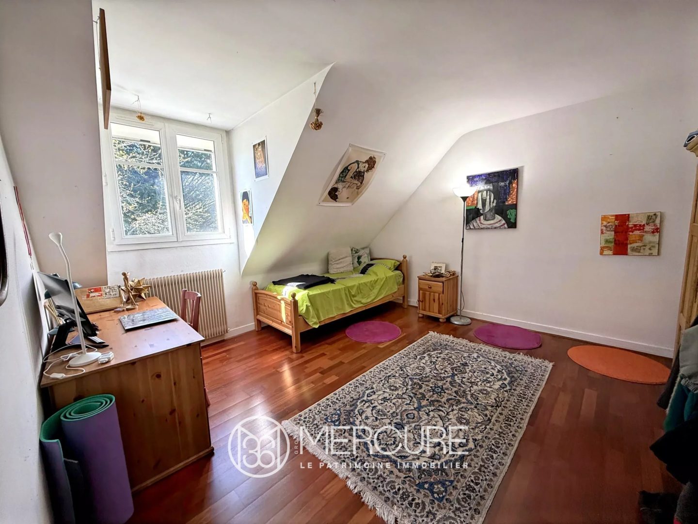 A spacious 9-room house offering 235 m² of living space, with outbuildings, set in a pleasant, enclosed garden of 1,644 m² featuring mature trees, a large wooden terrace and a dining pavilion. The roof insulation, wood-pellet boiler and double glazing ensure excellent energy efficiency.