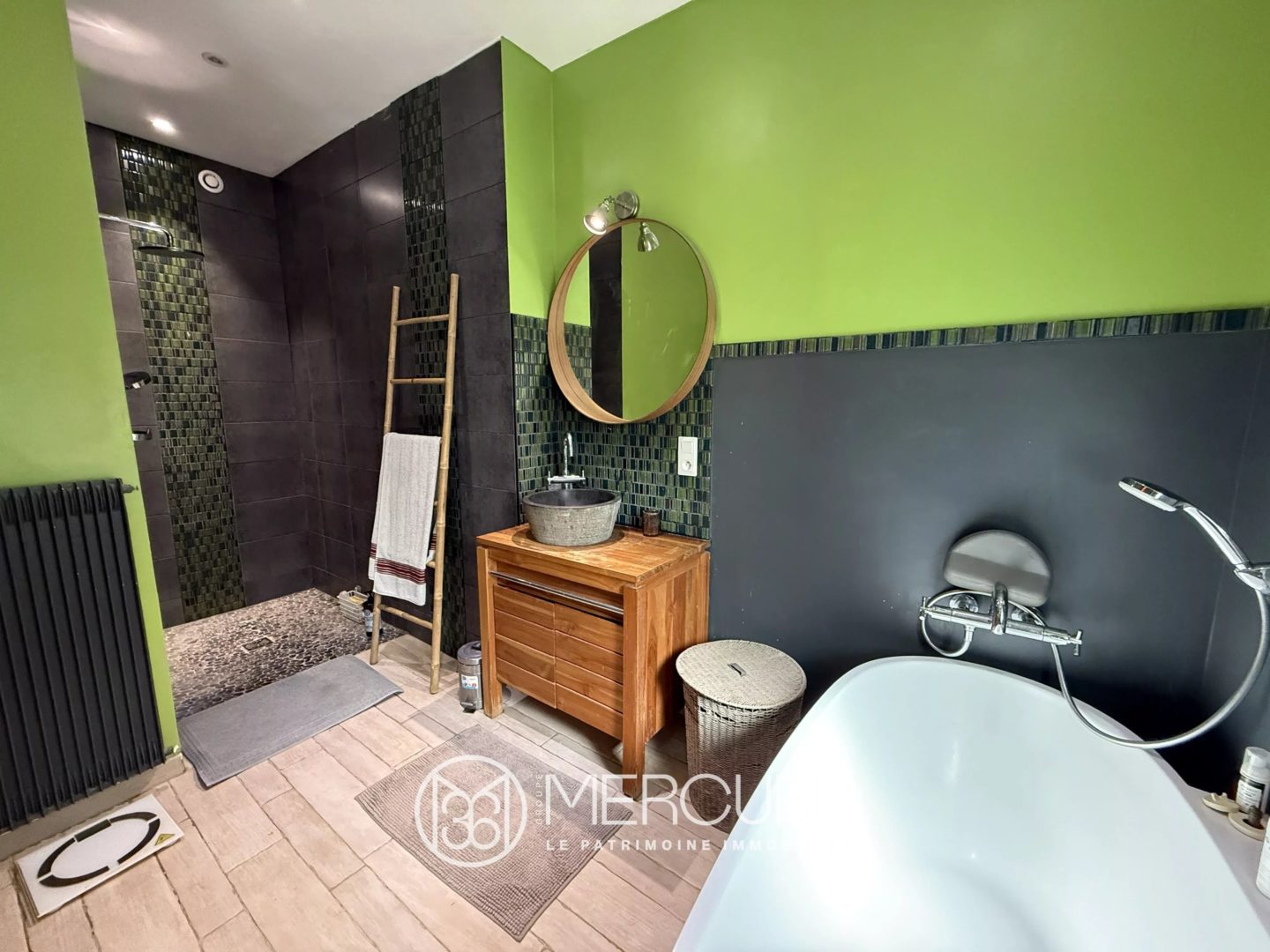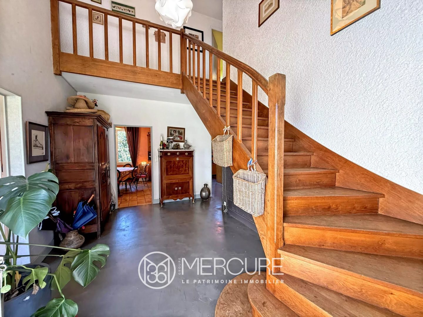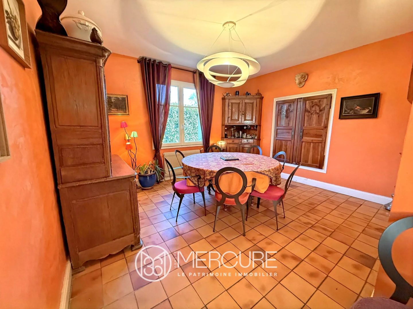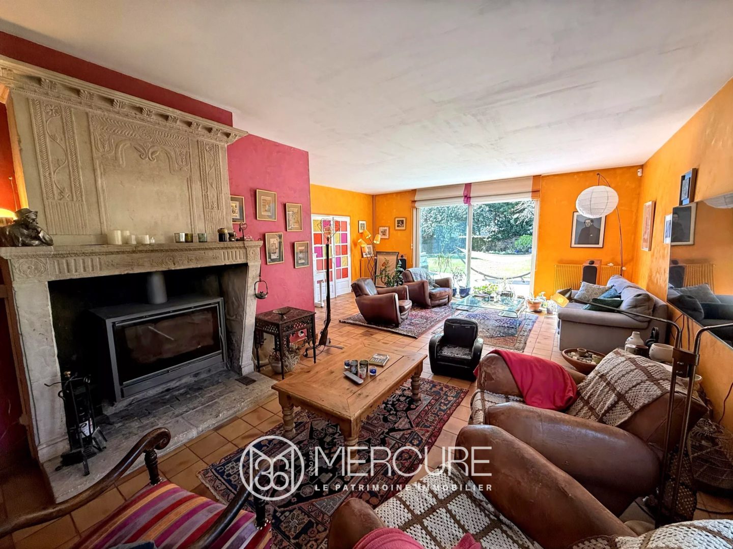 A spacious 9-room house offering 235 m² of living space, with outbuildings, set in a pleasant, enclosed garden of 1,644 m² featuring mature trees, a large wooden terrace and a dining pavilion. The roof insulation, wood-pellet boiler and double glazing ensure excellent energy efficiency.