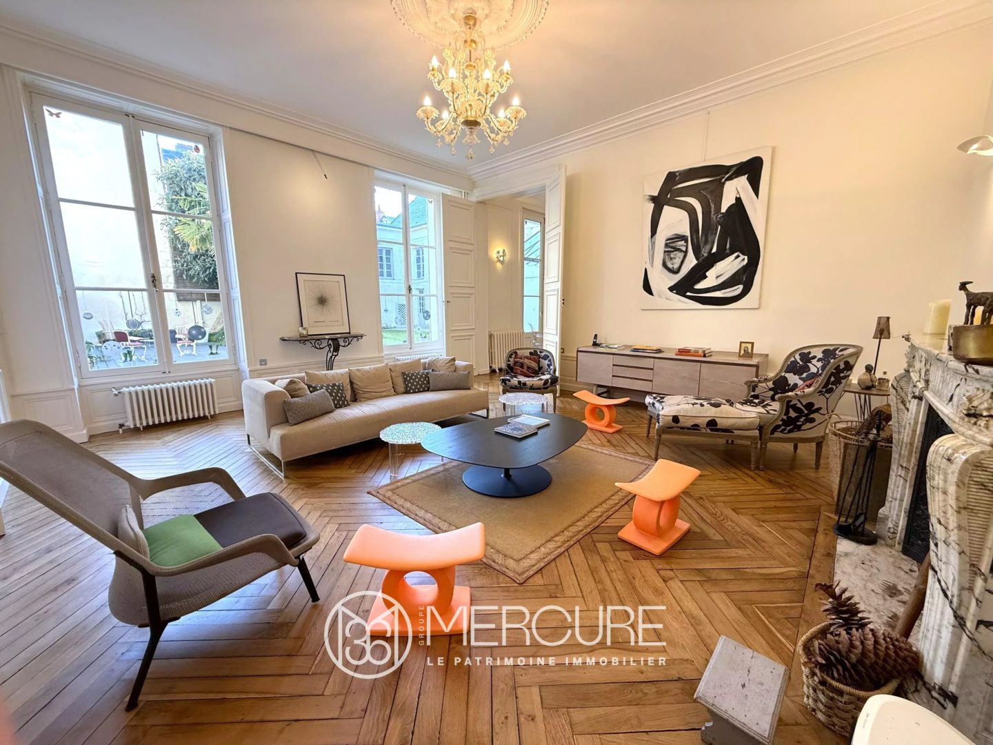 Located on a quiet street in the heart of the city and within walking distance of numerous attractions — shops, high-speed train station (Paris in 1h20), bustling markets, theaters, and cinemas — this Second Empire private mansion, with a surface area of 356 m², has been fully restored with respect for its architectural heritage. The property is harmoniously organized around a paved inner courtyard and a garden featuring a spacious south-facing terrace, shielded from view. It also includes former stables of 174 m² and an annex house of 103 m².