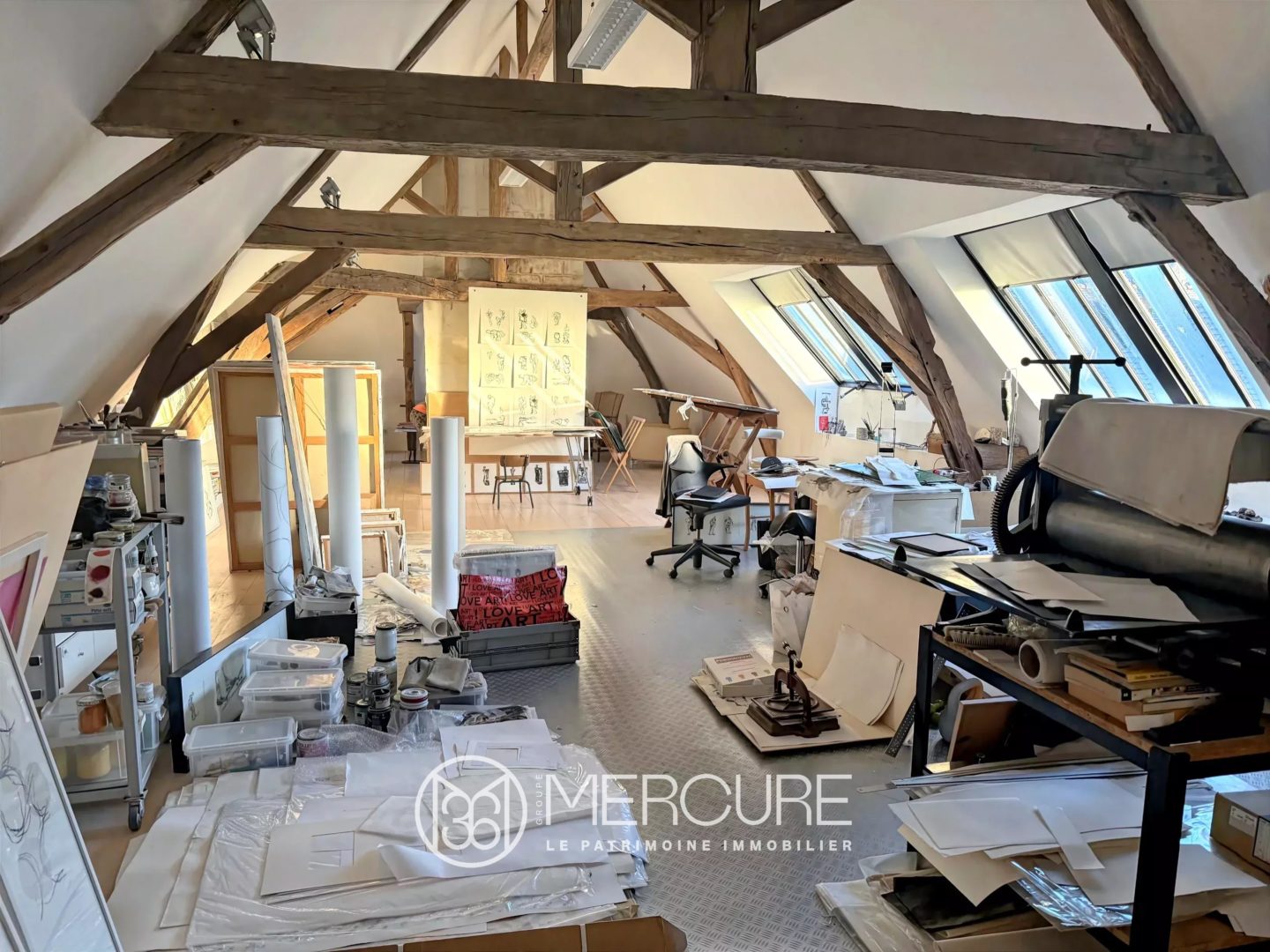 Under the eaves, a magnificent artist’s studio bathed in natural light offers a unique space, complemented by a sitting area and a laundry room.