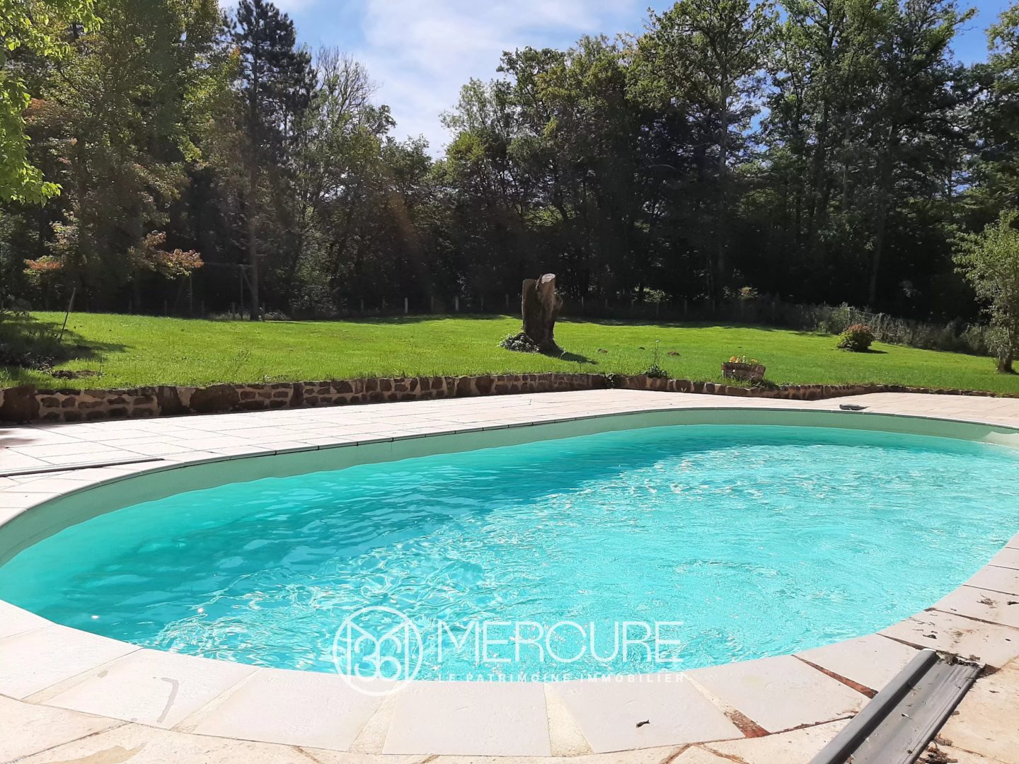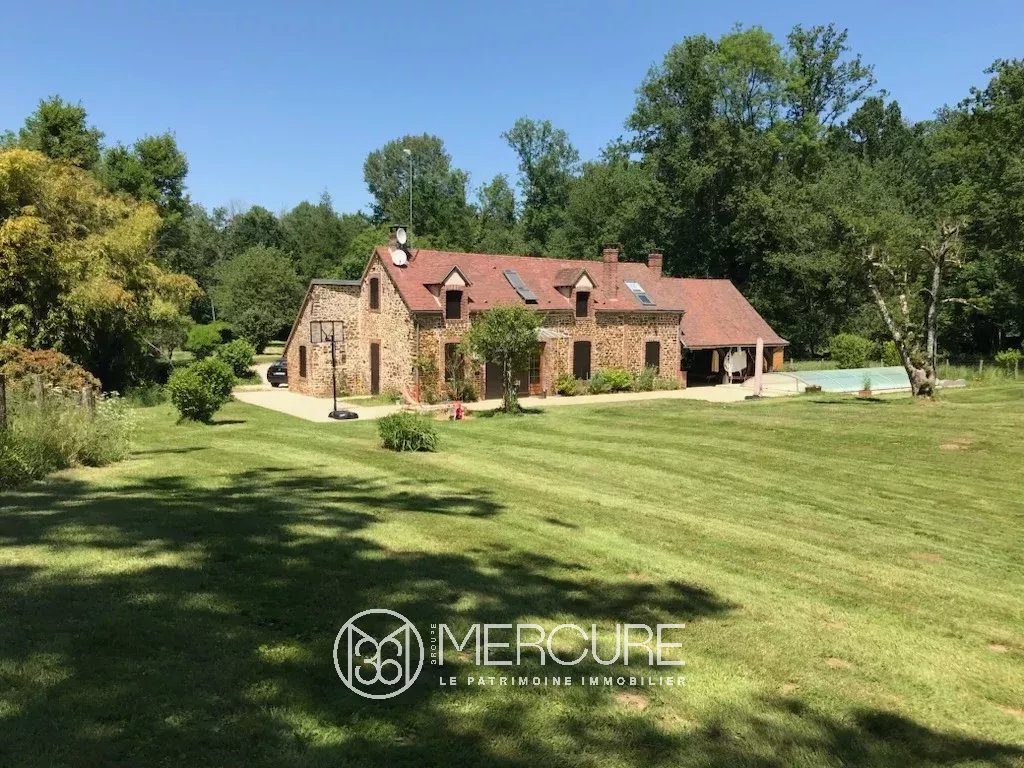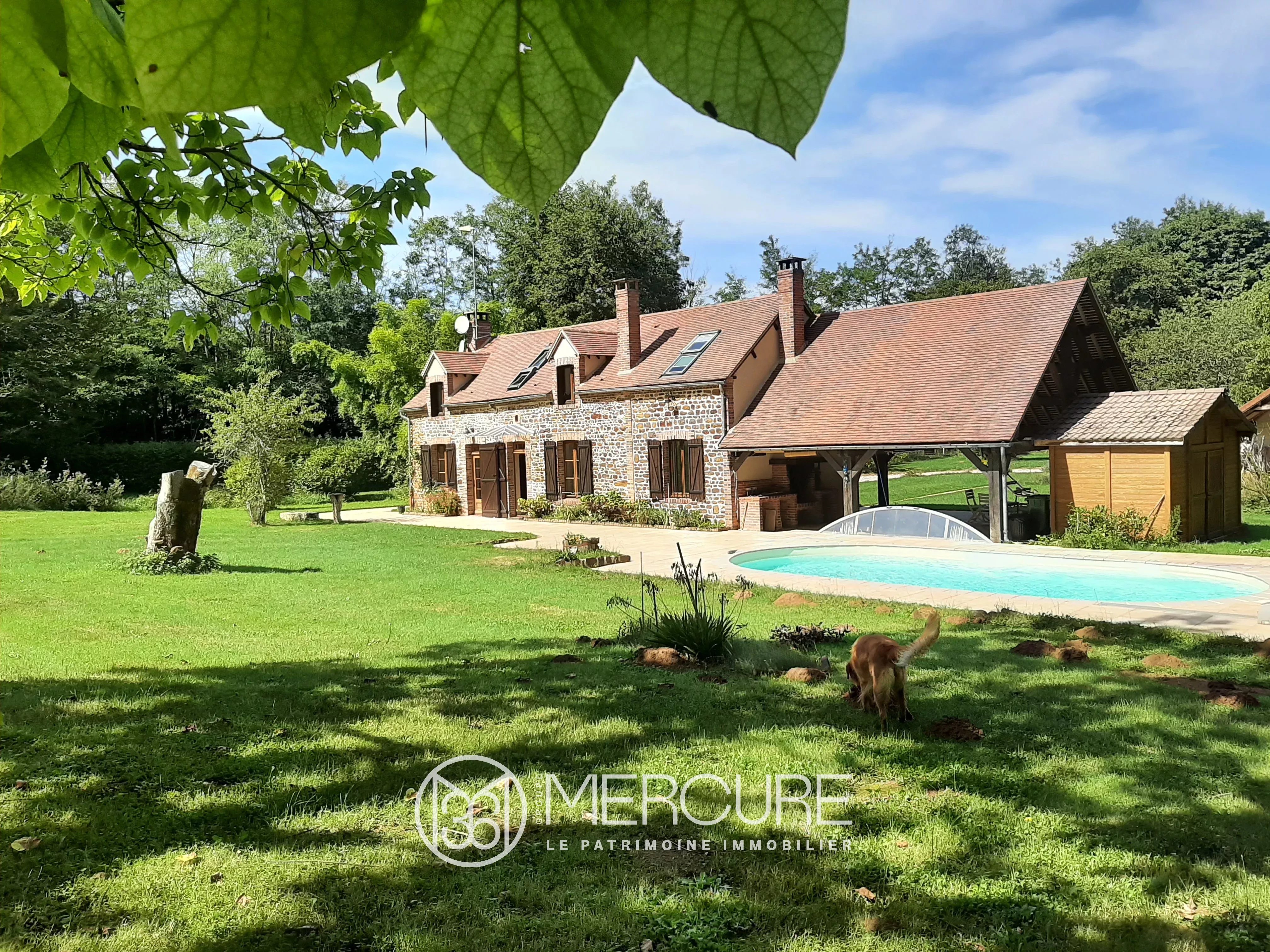 The stone house, with approximately 118m² of living space (more floor space) in 5 rooms including 4 bedrooms (one on the ground floor), extends into a large covered courtyard with barbecue, a terrace and a swimming pool.