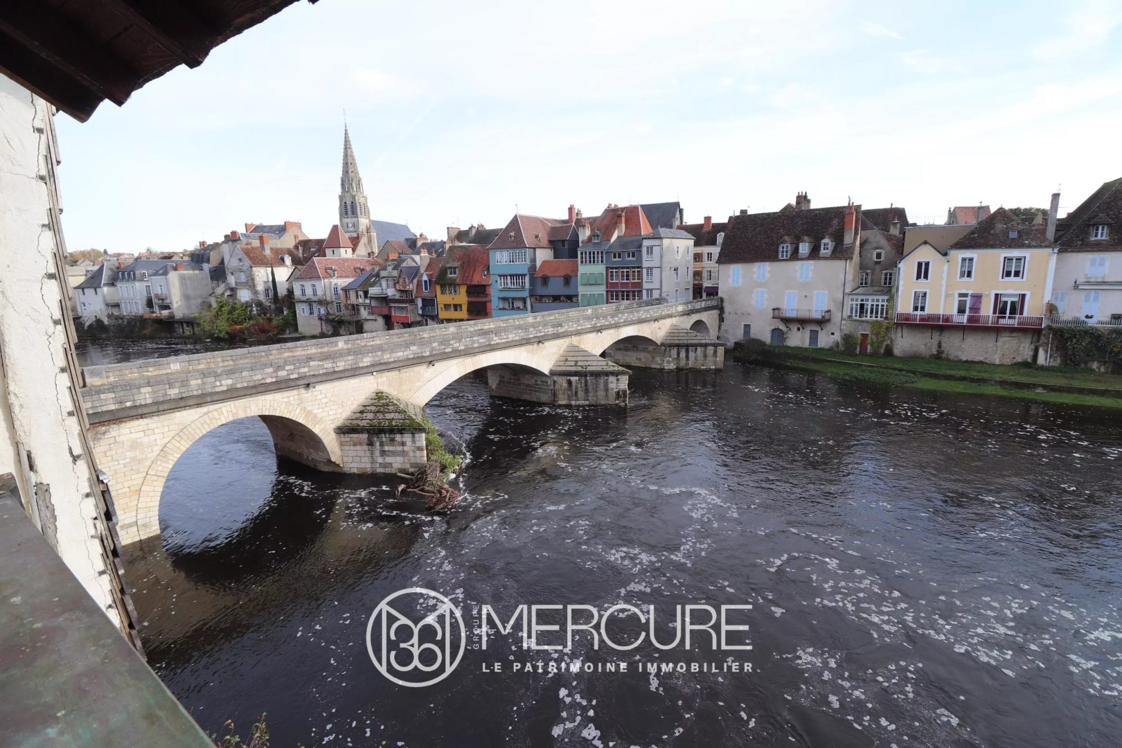 In Argenton-sur-Creuse, in this 16th C. half-timbered house, would have slept the famous comedian and playwright Molière. Very well renovated while respecting period materials, it now offers a 113 sq. mt. apartment, a 73 sq. mt. apartment, a studio, a small shop, common portions, and a lower level consisting of a former piano-bar and a vaulted cellar. Besides, a solarium terrace on waterside embellishes the place.