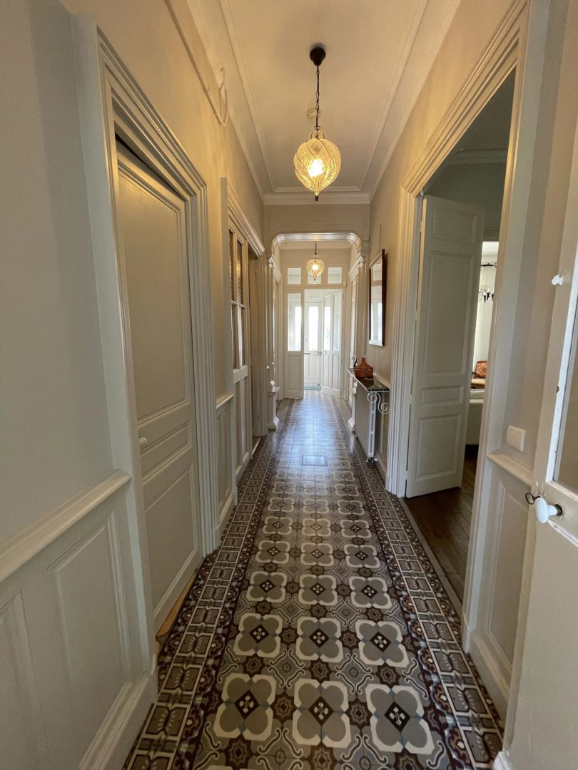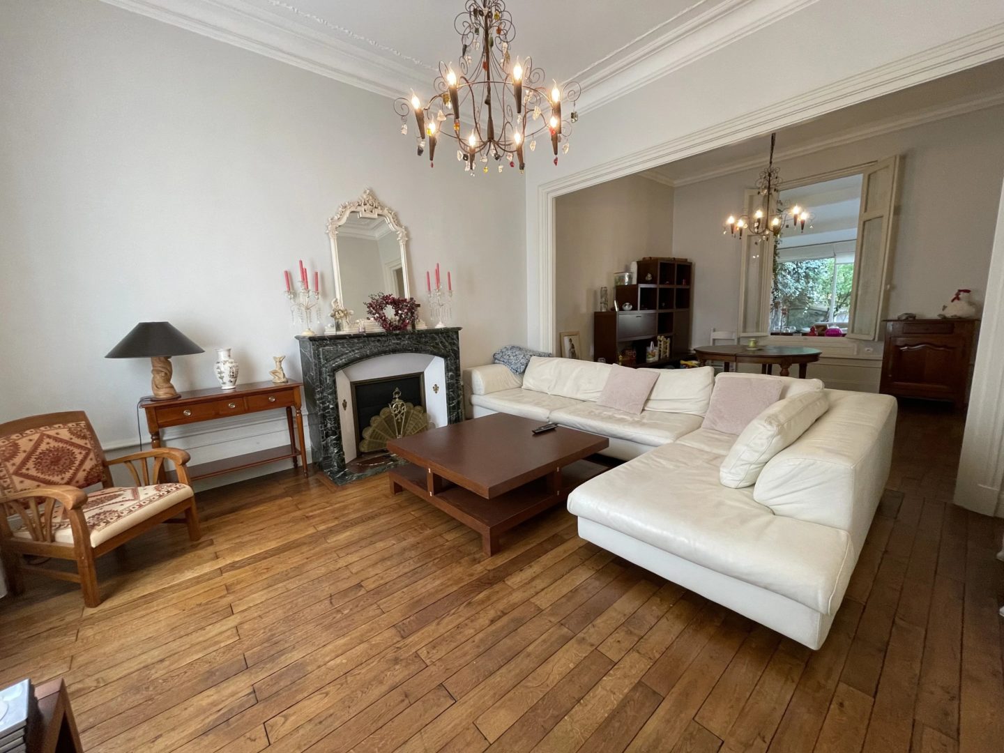 A proximité immédiate du Centre Ville et des commerces, Maison de ville XIXème de 249 m² offrant de beaux volumes et en très bon état avec charmant jardin et son abri. Nombreux éléments d’authenticité : parquets, moulures, carreaux-ciment, cheminées marbre…