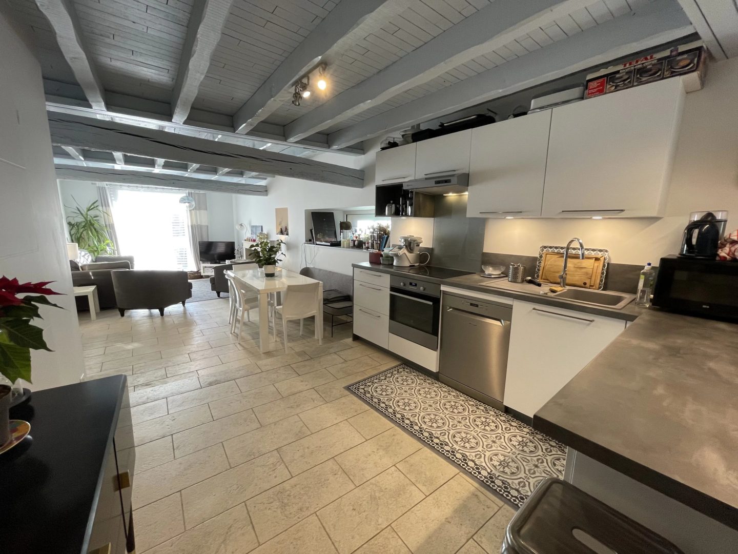 Maison de ville entièrement rénovée avec des matériaux de qualité, offrant un séjour lumineux ouvrant sur le jardin avec terrasse.