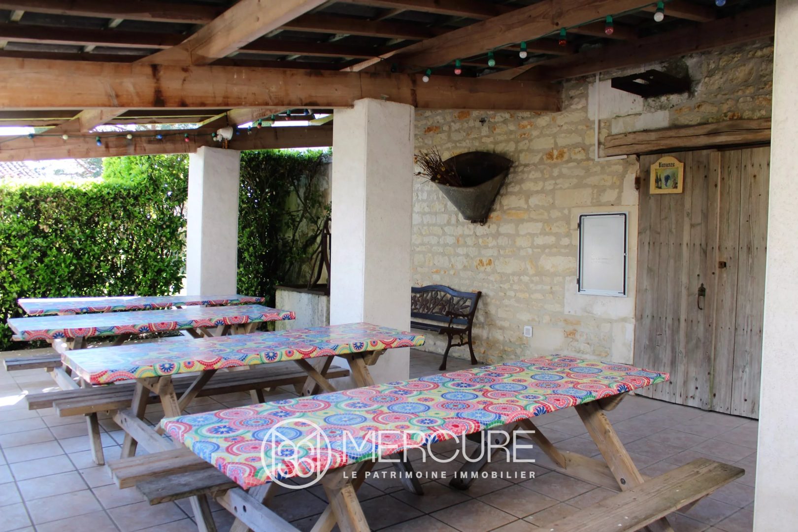 Peaceful and comfortable, this attractive estate ensemble of approximately 510 sq. mt as living space is set in enclosed grounds of 5102 sq. mt, surrounded by the countryside. Located near the Coast, between Saintes and Royan, this authentic property offers a great potential for a host activity and all is ready to start your business in this touristic region.