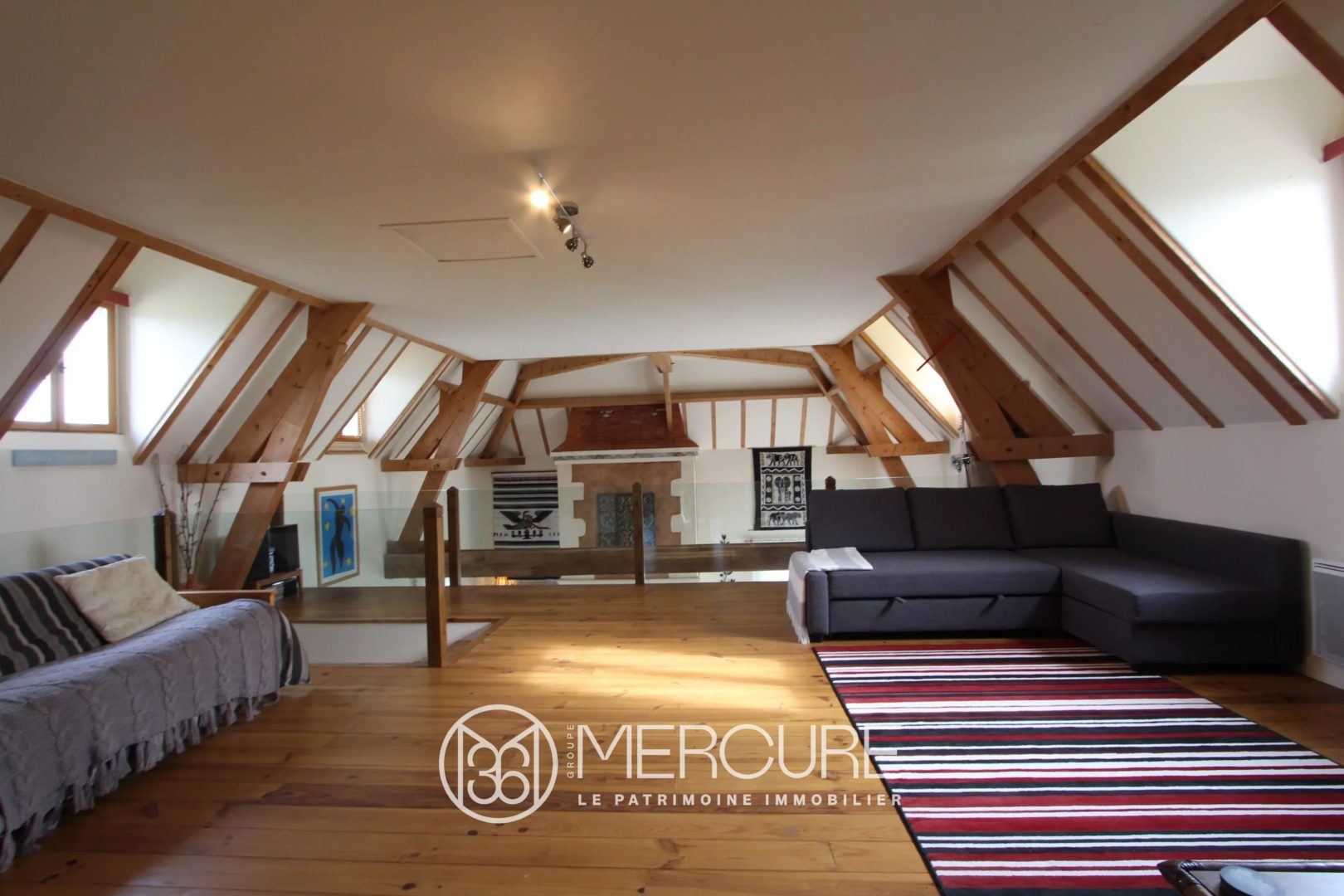 Le RDC est composé d’une entrée donnant sur une grande pièce de vie avec une partie salon cathédrale 40 m² et cheminée et une partie salle à manger 12 m², une cuisine moderne entièrement aménagée 20 m², et, bien séparée, une grande chambre 25m² avec sa salle d’eau.
