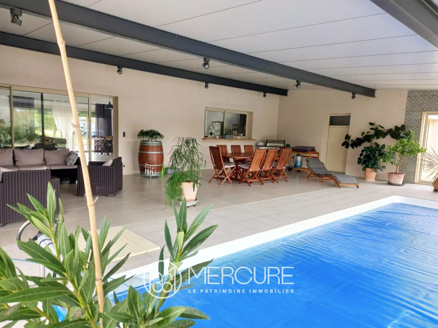 – une pièce de 120 m² avec sa piscine 9x4m et sa pool-house avec douche et WC