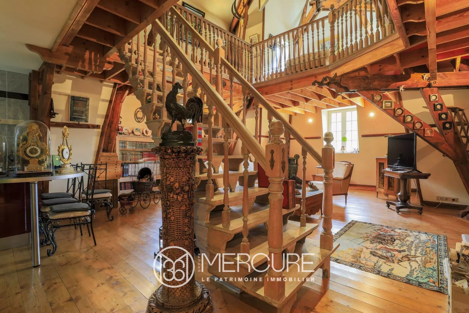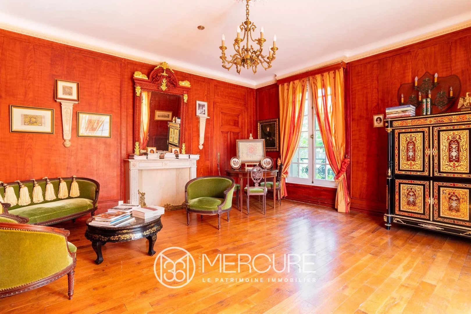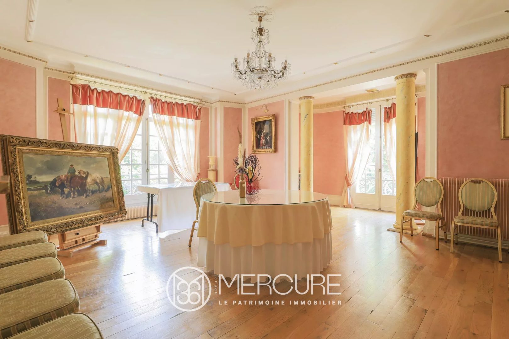 Spread over three floors, the building spans almost 1,000 sqm and offers on the ground floor an immense reception room of more than 110 sqm, with high ceilings, very bright and overlooking the park and the ruins of the old church, as well as a smoking room, a kitchen and a scullery.