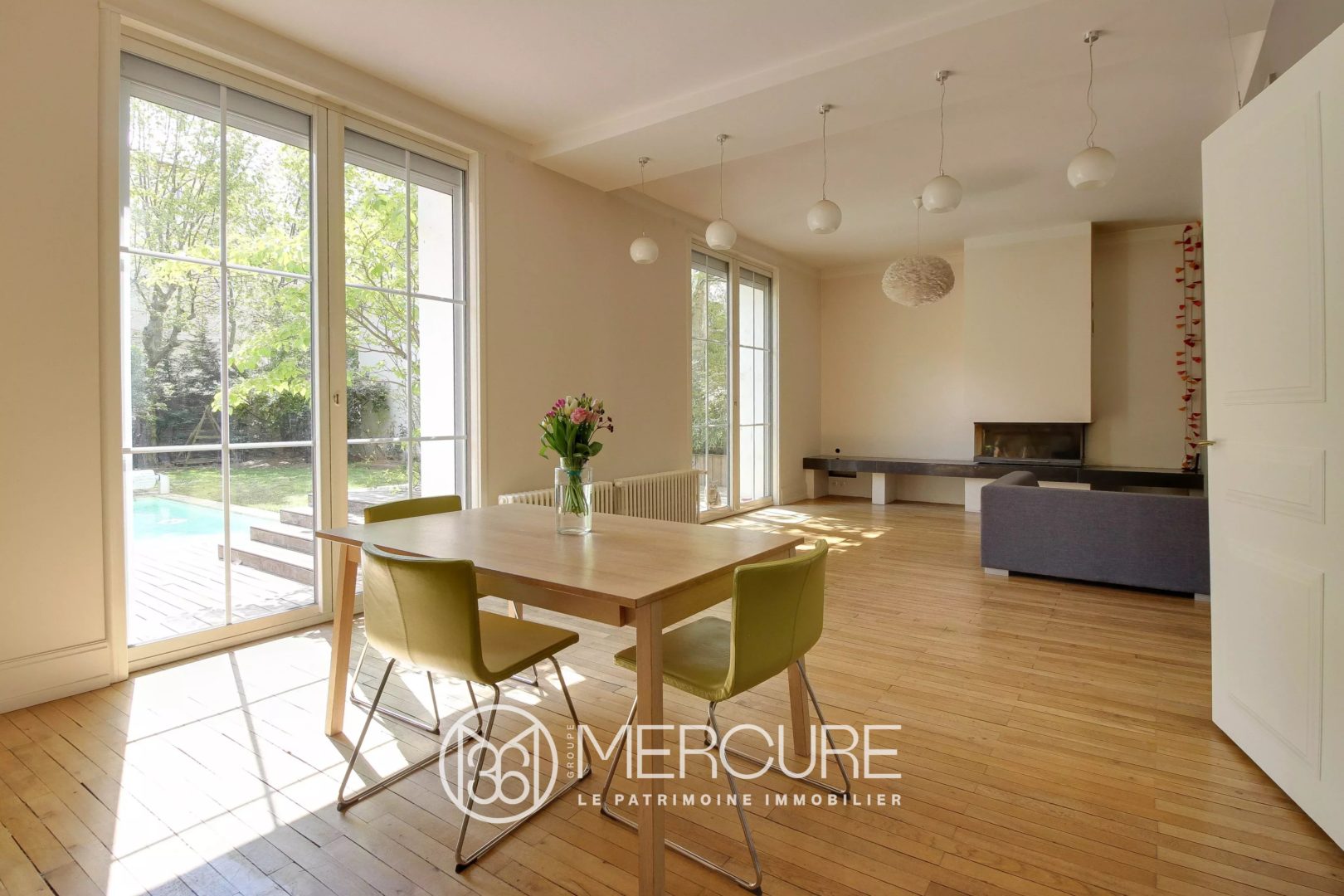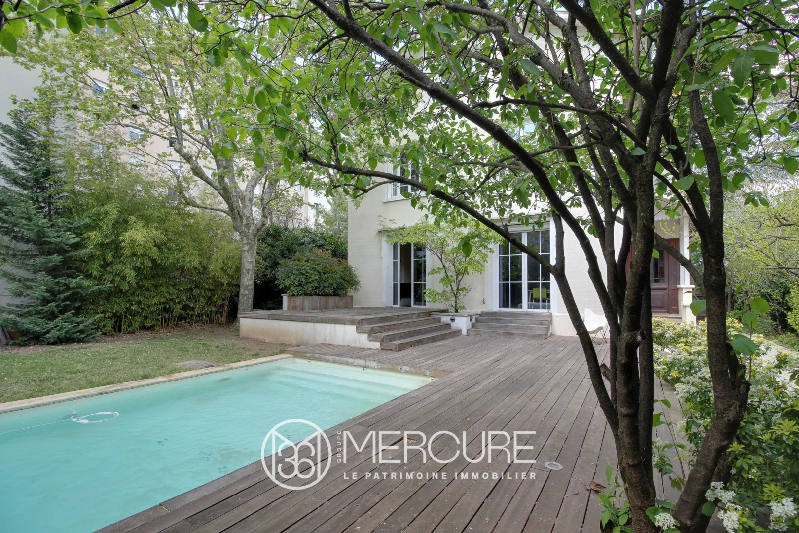 Rare: beautiful, very spacious town house in the heart of the 3rd arrondissement of Lyon with swimming pool and wooded and enclosed garden, close to avenue des Frères Lumière, place Ambroise Courtois and the city center. The famous Institut Lumière. Qualitative renovation and highlighting of this house from the 1920s by the architect Stéphane Millet: volume, light, 8 rooms, 7 bedrooms on 3 levels – 311 m² living space, 223, 28 m² in Carrez Law. House and garden facing south west. The house is spread over 3 levels and a large basement of 73 m² including 3 cellars. On the ground floor: entrance hall, living room, kitchen and pantry with direct access to the garden, living room with fireplace (insert), quality French windows opening onto various exotic wood terraces in very good condition, including a terrace leading to the swimming pool. Upstairs: 3 large bedrooms including a parental area with bathroom / shower room and dressing room, and a bedroom with shower room. The 2nd level has 3 bedrooms, a reading corner, 2 shower rooms. 8m x 4m heated swimming pool with counter-current swimming and roller shutter. Quality materials, great comfort and thermal insulation, beautiful interior staircase renovated by an artistic ironworker, This property still has a few spaces to develop and personalize by future buyers: a charming gazebo in the garden, the northern part of the garden. The current owners of this residence insisted on the vegetation of the ground (800 m²) and enriched it with numerous trees: maritime pine, birch, various species: true territory of birds. This living space deserves a great discovery and it is a real little corner of paradise and countryside 10 minutes from Place Bellecour by bike or by metro. Motorized garage accessible from the street. Close to all shops including upscale food shops, schools, colleges and high school (Charles de Foucaud high school). Metro Line D Sans-Souci 4 minutes walk and Tram Part Dieu station 15 minutes walk Many squares and green spaces nearby